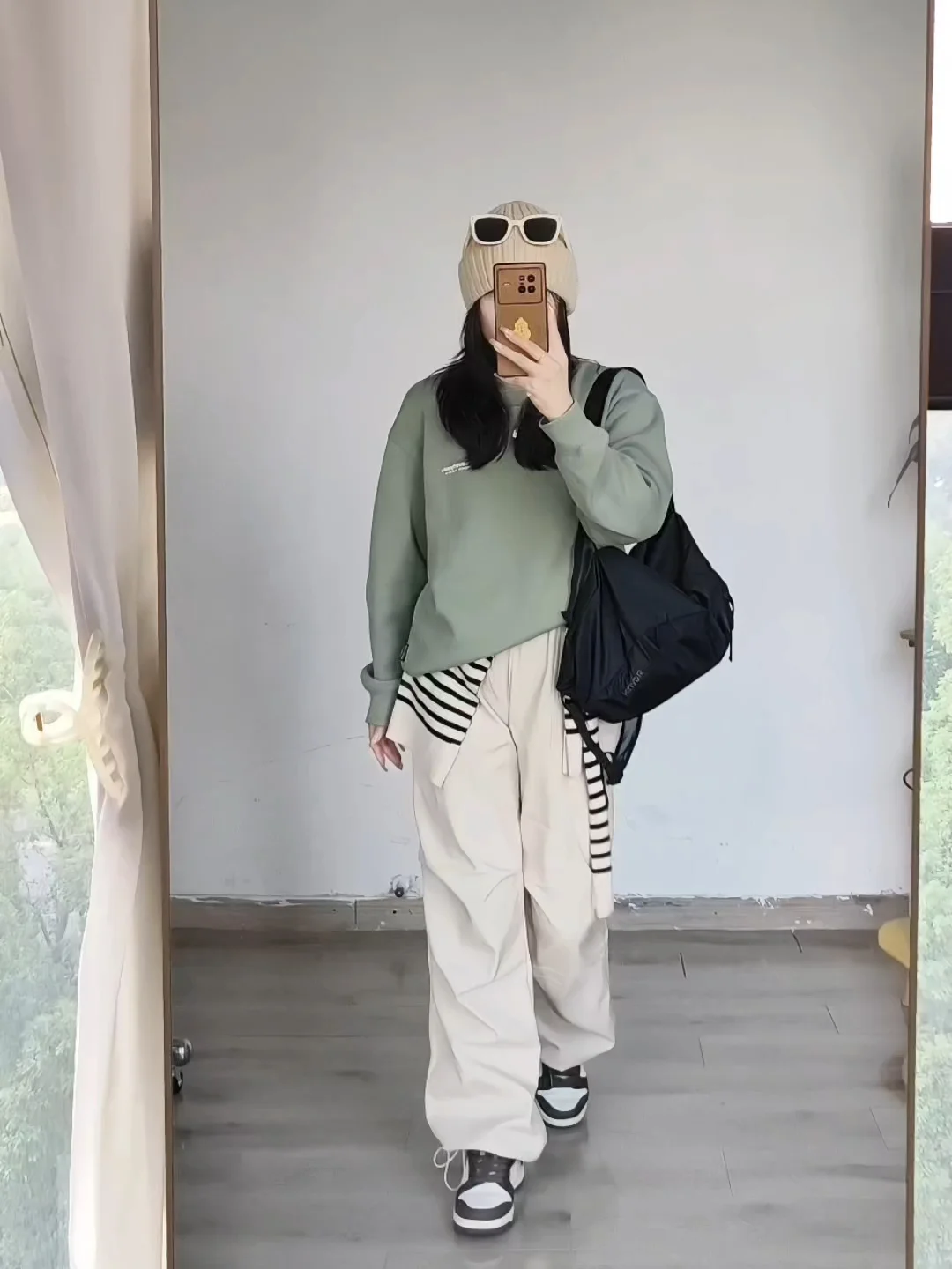 普通人实用穿搭❗绿色T恤❗跨四季穿搭思路