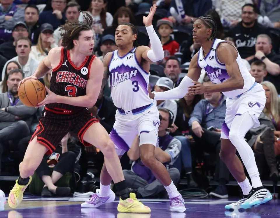 0.8秒三分准绝杀!马卡47分爵士双加时险胜公牛 吉迪26+12+13北京时间11月17日,NBA常规赛公牛客场对阵爵士,吉迪与怀特迎来复出,其中怀特是赛季首秀。爵士在最多落后15分情况下,马尔卡宁开启疯狂得分模式,引领爵士常规时间追平比分。双方鏖战两个加时赛,乔治第二个加时赛完成0.8秒三分准绝杀,武切维奇丢绝平三分,最终公牛147-150双加时惜败爵士遭遇5连败。公牛vs爵士