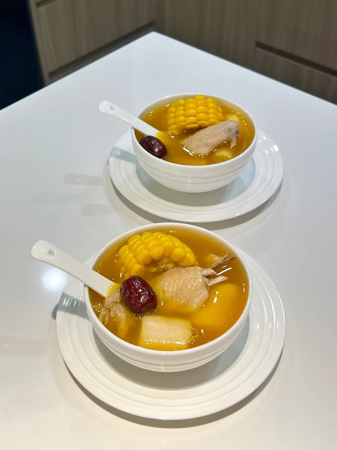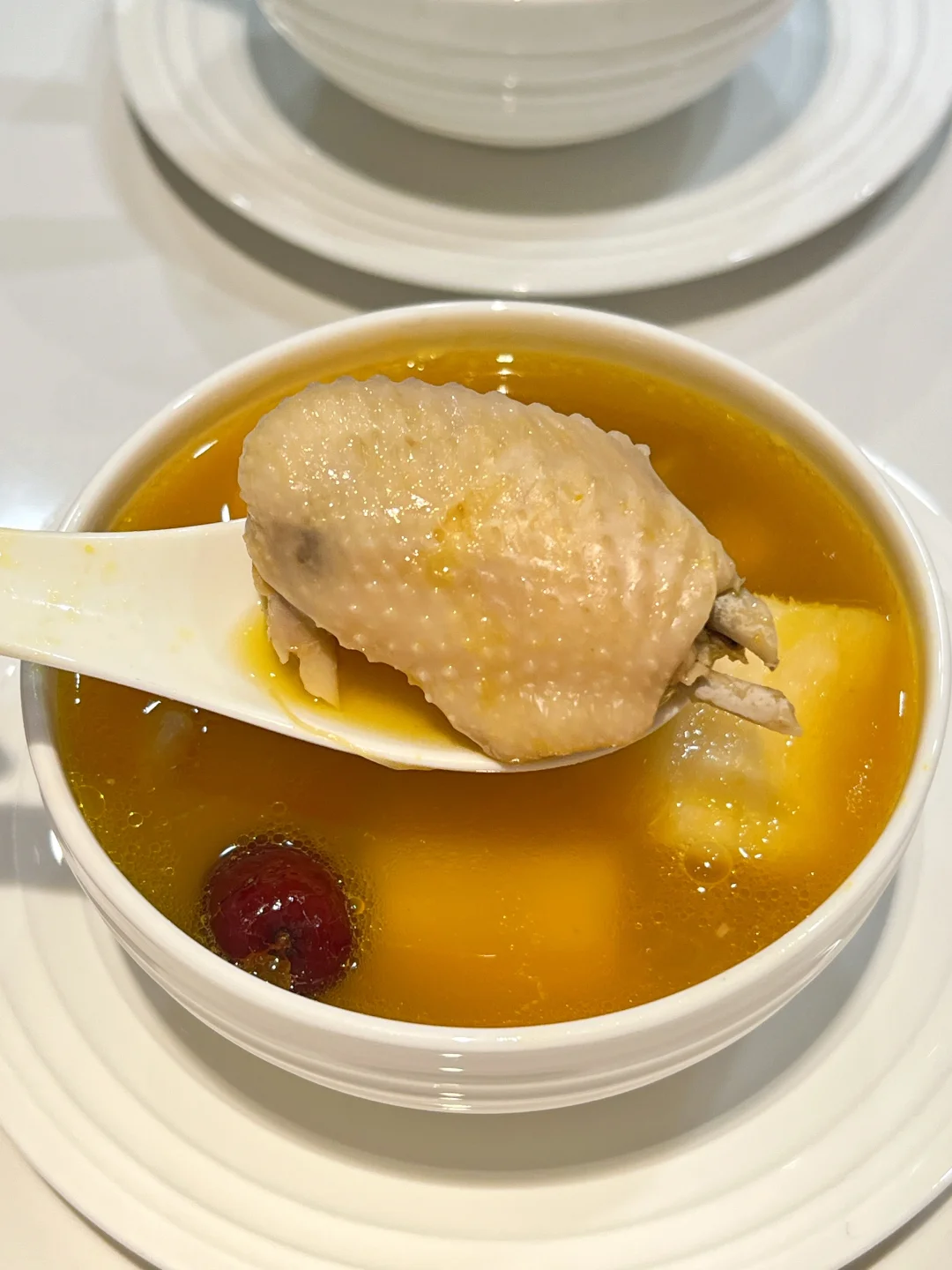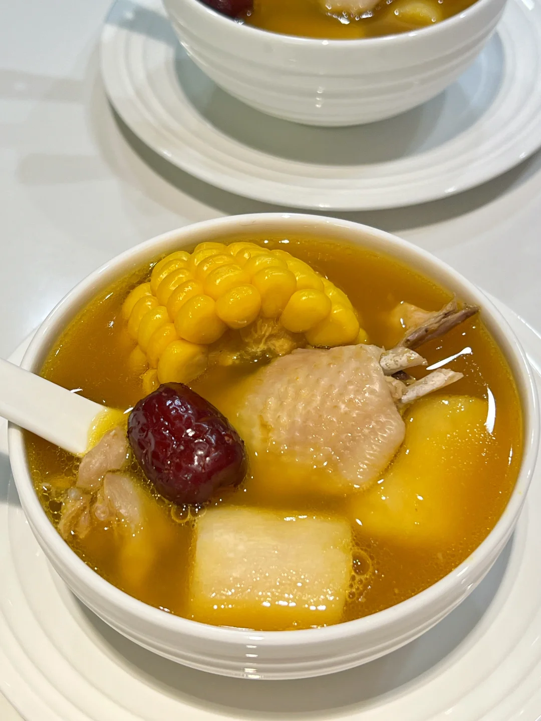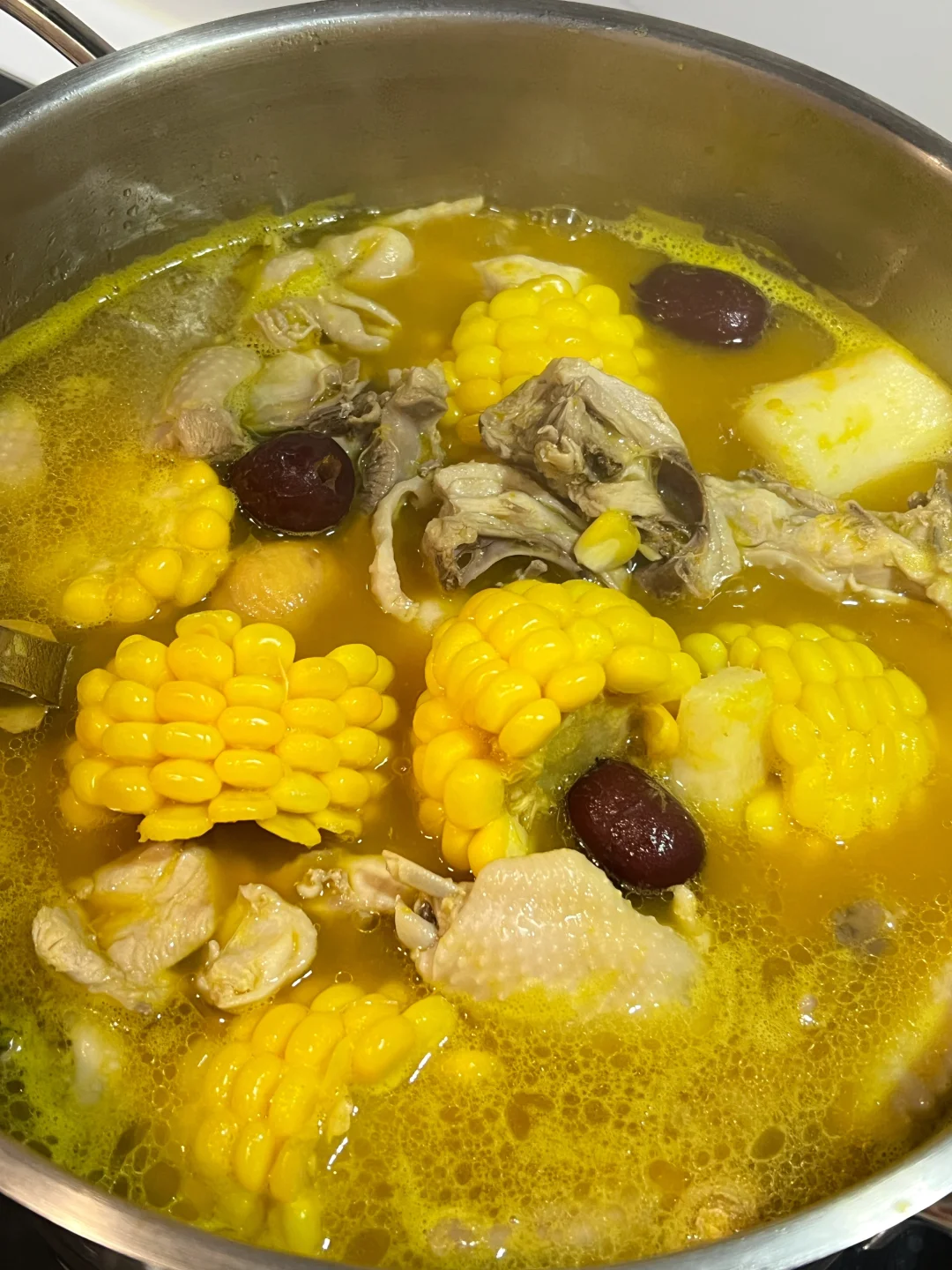 秋冬宜补肾,一定要吃这碗应季的金汤栗子鸡~ 南瓜汤超级清甜,鸡肉滑嫩,山药和栗子绵粉,玉米爆汁! 天冷了喝一碗,浑身都暖乎乎~ 🧑‍🍳食材: 1️⃣土鸡半只 2️⃣玉米一根 3️⃣铁棍山药200g 4️⃣栗子200g 5️⃣贝贝南瓜一个 6️⃣红枣6个 7️⃣生姜3片 🥣做法: 1️⃣锅中加入山药,玉米,栗子,红枣,姜片,加2000毫升清水,大火烧开后,小火煲30分钟。 2️⃣加入鸡肉,沸腾后再煲20分钟。 3️⃣贝贝南瓜削皮,去瓤切块,蒸熟碾成泥加入汤中,放盐调味即可。 ❗️小贴士: 1️⃣红枣核燥热,用之前先去核。 2️⃣选用土鸡味道更好。