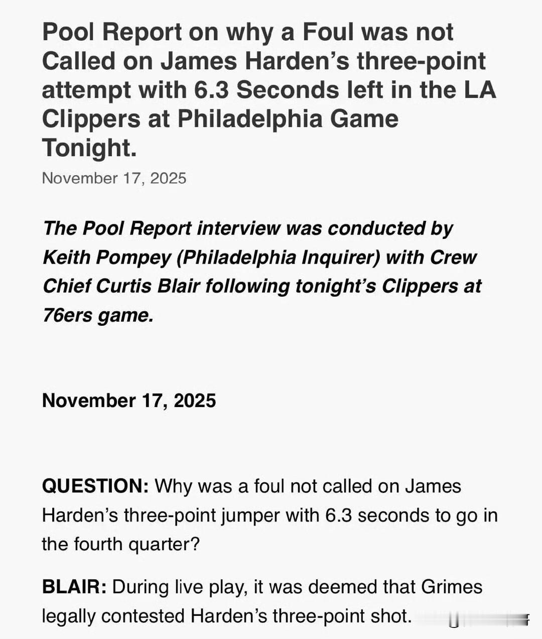 赛后报告来了!!!格莱姆斯正常干扰,哈登两次绝杀都失败了! 北京时间11月18日,在早些时候结束的一场比赛中,快船在领先的优势下被76人逆转,他们又输了。 比赛最后时刻哈登三分绝杀有些可惜,而且也引起了不小的争议,哈登认为格莱姆斯犯规在先,而他在反应过来抢到球做第二次绝杀的时候显然是没有做好任何准备的,这也导致两次机会都浪费了。 赛后,NBA官方对本场比赛最后时刻的出手进行了宣布,他们认为格莱姆斯属于正常的防守干扰,没有犯规,也就是说哈登的确两次绝杀失败了。 这个结果对快船还是很打击的,不过即使格莱姆斯犯规了又怎样呢,比赛结果已经确定,输了还是输了,只能怪自己被对手翻盘了。 快也来到了悬崖边上,目前他们4胜10负了,排名应该继续下降,谁会是第一个下课的呢? 哈登 nba 76人 快船 费城76人