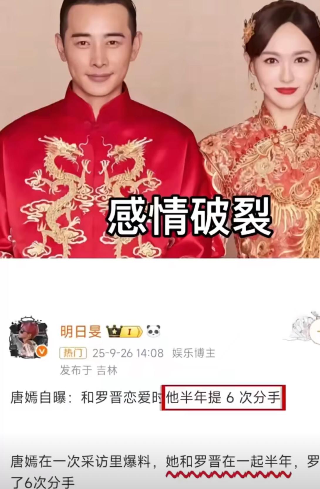 曝内娱著名恩爱夫妻已离婚! 真的是个大瓜啊。 据网友爆料竟然还是一对堪称模范夫妻呢,早期就传分居,现已爆出离婚。 苗头直接指向唐嫣与罗晋。 目前当事人还没有回应。 他俩真的是一对特别甜的夫妻啊! 真的不敢相信爱情了。 目前比较好磕的就是张若昀了。 继续观望,到底是谁?