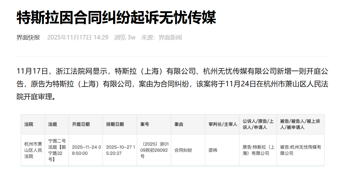 特斯拉起诉无忧传媒,这事儿居然没啥关注度。据说这事儿跟车无关,而无忧传媒拥有庞大的线上流量和网红资源。再结合特斯拉法务部“独立思考,明辨是非”的签名,你们觉得是啥原因?