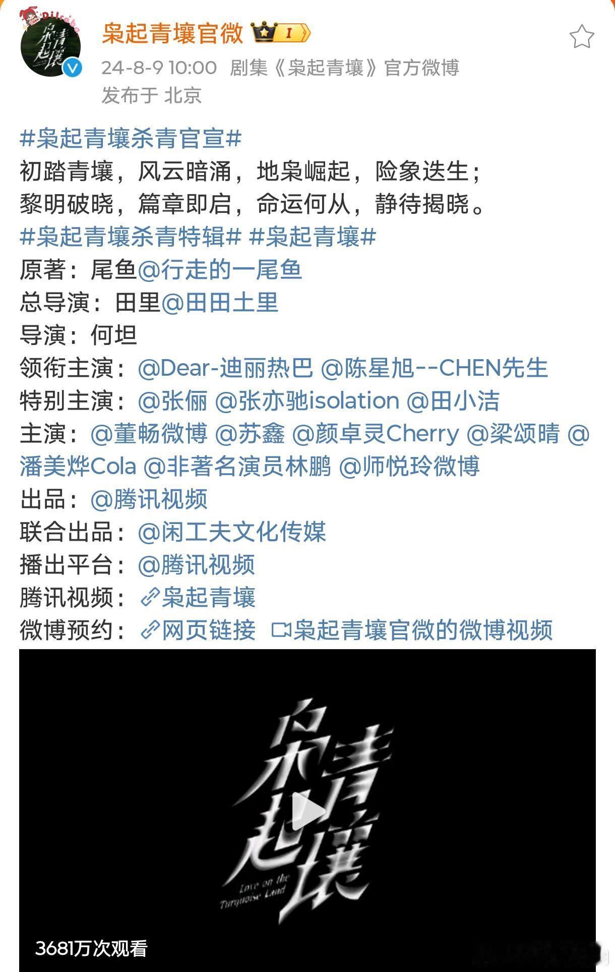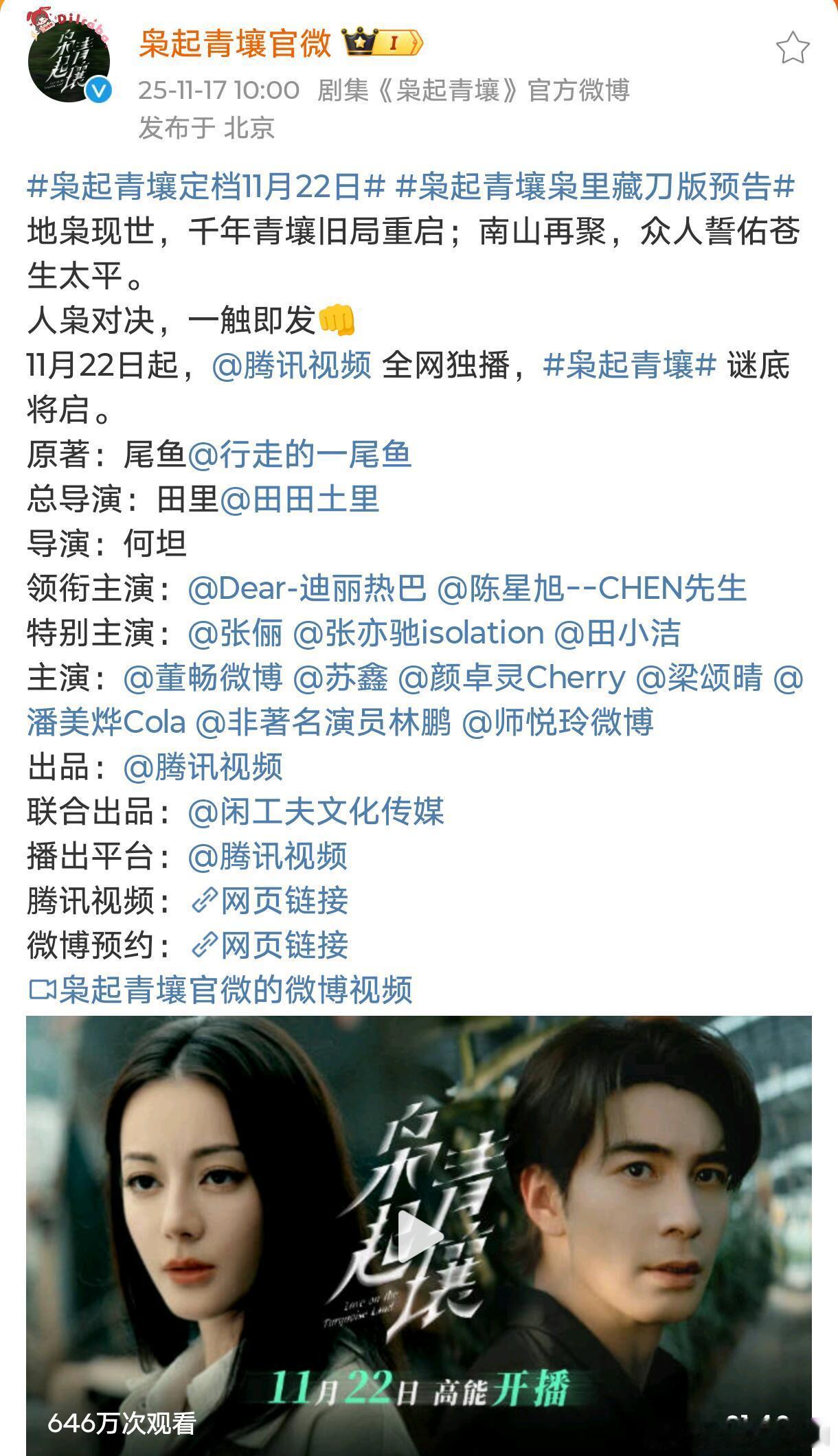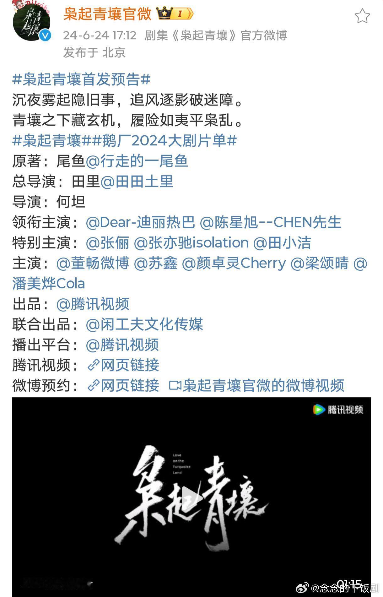 电视剧枭起青壤全程真的超级尊重作者尾鱼欢迎大家22号下午6点腾讯视频来看《枭起青壤》正式上线枭起青壤‖迪丽热巴‖陈星旭‖