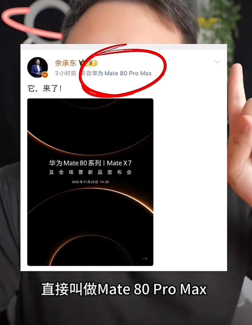 华为mate80已经来到,余承东手持mate80promax发文,有数码博主称m