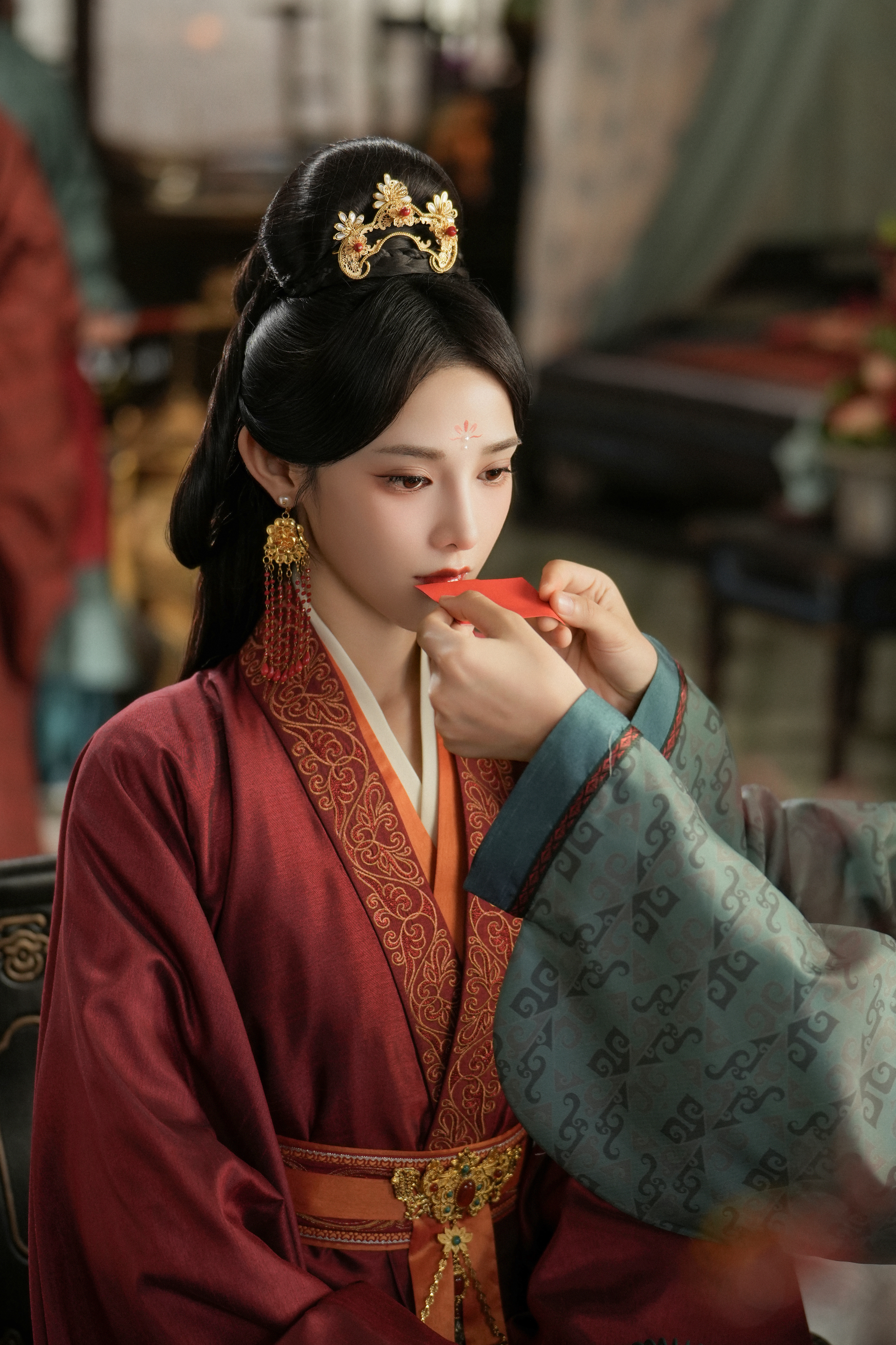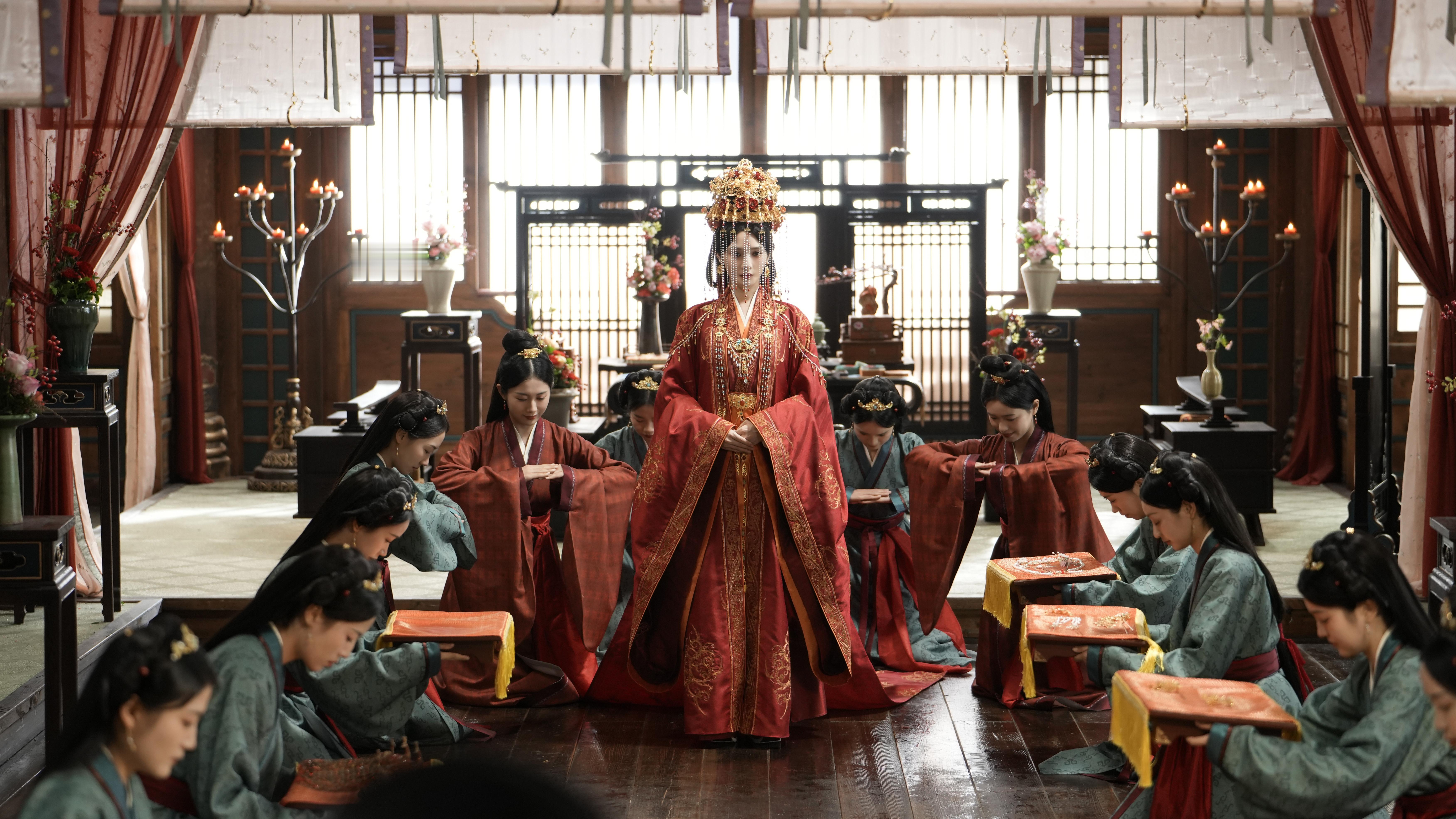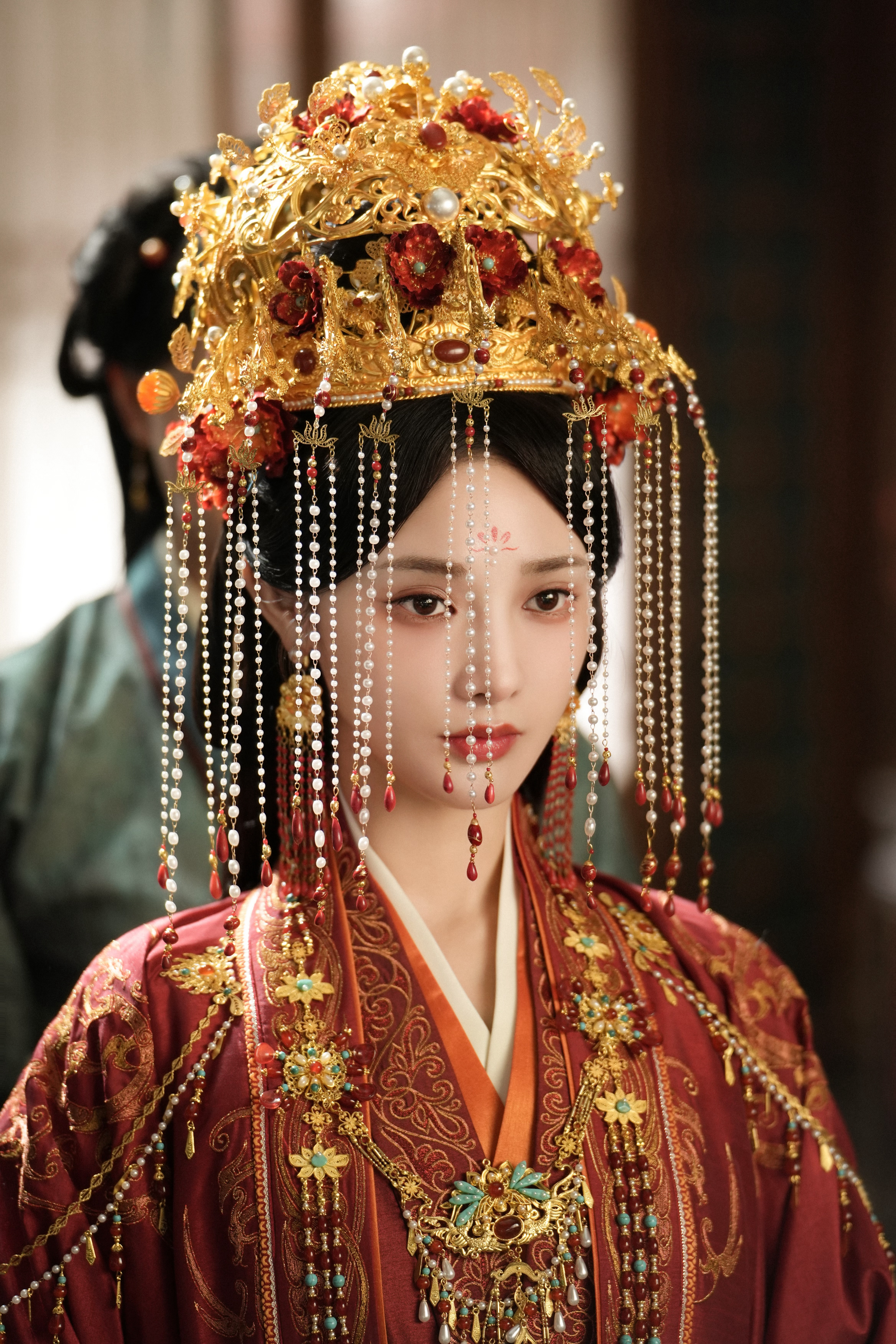 看清楚细节了!好漂亮的嫁衣 《凤凰台上》凌苍苍☽ 剧照-嫁衣+花钿+珍珠妆+面帘