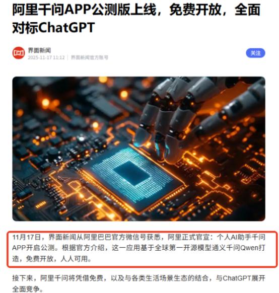 恐怕今年圣诞节,美国硅谷巨头们都要彻夜无眠了! 往年这个时候,硅谷的高管们早该带着家人去夏威夷度假,可今年不一样,阿里千问甩出的一记记重拳,直接把“科技大本营”的温度砸到了冰点。 曾经把“中国科技落后”挂在嘴边的西方媒体,如今集体沉默;之前宣称“AI霸权永远属于美国”的大佬们,连夜召集技术团队开紧急会。 这场景,倒有点像南海那艘掉了飞机的“尼米兹”号——前阵子还趾高气昂,转头就陷入了进退两难的尴尬,某种意义上,也是科技霸权逻辑失灵的真实写照。 谁能想到,年初硅谷还在嘲笑中国大模型“只会模仿”,说开源是“技术扶贫”。可才过半年,风向彻底变了。 阿里千问根本没给他们反应时间,4月刚甩出8款Qwen3系列模型,7月就开源了能写代码的Qwen3-Coder,9月干脆钻进了亚马逊的云服务器,全球开发者点几下鼠标就能用。 更狠的是,这些模型不是“样子货”——2350亿总参数的旗舰版,激活只要220亿参数,4张普通显卡就能跑起来,显存占用比同类模型少三分之二。要知道,硅谷之前的主流模型,光部署成本就得几百万美元,中小公司想都不敢想。 这下硅谷彻底坐不住了。 英伟达CEO黄仁勋在GTC大会上被逼得说实话:全球开源模型里,Qwen已经占了大半市场份额,跟英伟达的合作模型更是断层领先。爱彼迎CEO更直接,公开说公司“大量依赖Qwen”,比OpenAI“更好更便宜”。 这话传到硅谷,就像往热油里泼了水。有AI博主在X平台上晒出测试截图:同样解一道复杂的数学题,Qwen3花3秒出结果,GPT-4o要等7秒,谷歌Gemini还报错了。底下评论区炸了锅,有人说“硅谷的技术护城河漏了”,还有人调侃“以后学AI得先学中文”。 最让美国精英们闹心的,是阿里千问的“开源打法”。谷歌前CEO施密特在播客里急得直拍桌子:“美国最好的模型藏着掖着还收费,中国顶尖模型敞开了免费给用,这仗怎么打?” 他预言,再过两年,全球大多数国家都会用中国AI技术——毕竟没谁跟钱过不去,开源模型能省几百万授权费,中小开发者还能自己改代码,这种吸引力根本挡不住。 施密特没说假话,现在全球下载Qwen模型的已经突破6亿次,衍生出17万个定制版本,连宝马、LV这些国际大牌都在用来做客户服务。 美国不是没还手。年初特朗普政府拉着OpenAI、甲骨文搞了个“星际之门”计划,砸5000亿美元建AI基础设施,想把中国排除在外。 芯片管制更是变着花样来:一边偷偷放宽老款芯片出口(怕美国企业丢市场),一边又把华为昇腾芯片列入黑名单,威胁用这些芯片的企业要受罚。 可这套“又堵又放”的招数根本不管用——中国自己的芯片虽然还没追上最顶尖的,但跑Qwen3绰绰有余;而且阿里的模型本来就省算力,36万亿tokens的训练数据早就把“内功”练足了,不是靠堆芯片就能压制的。 硅谷巨头们抱团搞的“封闭联盟”,反而把自己捆住了。OpenAI跟英伟达绑定卖算力,谷歌自己的模型藏着不让外人用,结果把市场拱手让给了Qwen。 11月阿里千问APP一上线,白宫急得连夜抛“国家安全”备忘录,造谣阿里“帮军方搞技术”,可阿里巴巴和中国使馆一辟谣,美国企业反而更积极了——亚马逊直接把Qwen3放进自己的云服务里,日本、阿联酋的AI公司扎堆来要授权。 这就像当年美国打压华为,结果华为的5G专利反而卖得更多,道理一样:技术好不好,市场说了算,不是靠政客一张嘴。 其实硅谷的恐慌,本质是“霸权思维”撞上了“开源生态”的必然结果。 美国一直觉得技术该“垄断赚钱”,可AI这东西是靠开发者喂出来的——你越封闭,用的人越少,模型迭代越慢;中国越开放,全球开发者都来帮忙完善,技术自然越跑越快。斯坦福大学的报告早就说了,中美顶级AI模型的差距已经缩到0.3%,快抹平了。 现在美国想靠“安全牌”卡脖子,可全球100多万家用上Qwen的企业不会答应,那些靠开源模型创业的开发者更不会答应。 说真的,硅谷要是真能彻夜无眠想明白这事,倒不是坏事。 他们该看清了:科技竞争从来不是“谁卡谁脖子”,而是“谁能让更多人受益”。当年美国靠开源软件打败了闭源的IBM,现在中国靠开源AI反超,不过是历史重演。 11月那架在南海绕圈的P-8A反潜机找不到坠机,就像现在美国找不到压制中国AI的办法——越是急着“找回场子”,越容易乱了阵脚。 今年的圣诞钟声里,硅谷的高管们或许该少想点“霸权”,多想想施密特说的实话。中国AI不是“突然冒出来的黑马”,是踩准了“开源共赢”的节奏,一步一步拼出来的。等明年Qwen4出来,恐怕就不是“彻夜无眠”那么简单了——那会是整个科技界的格局改写。
