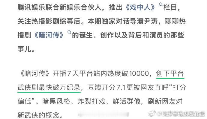 龚俊《暗河传》创下优酷武侠剧最快破万纪录,“暗河之下寻光明” 的主题,搭配高能打戏引发热议。