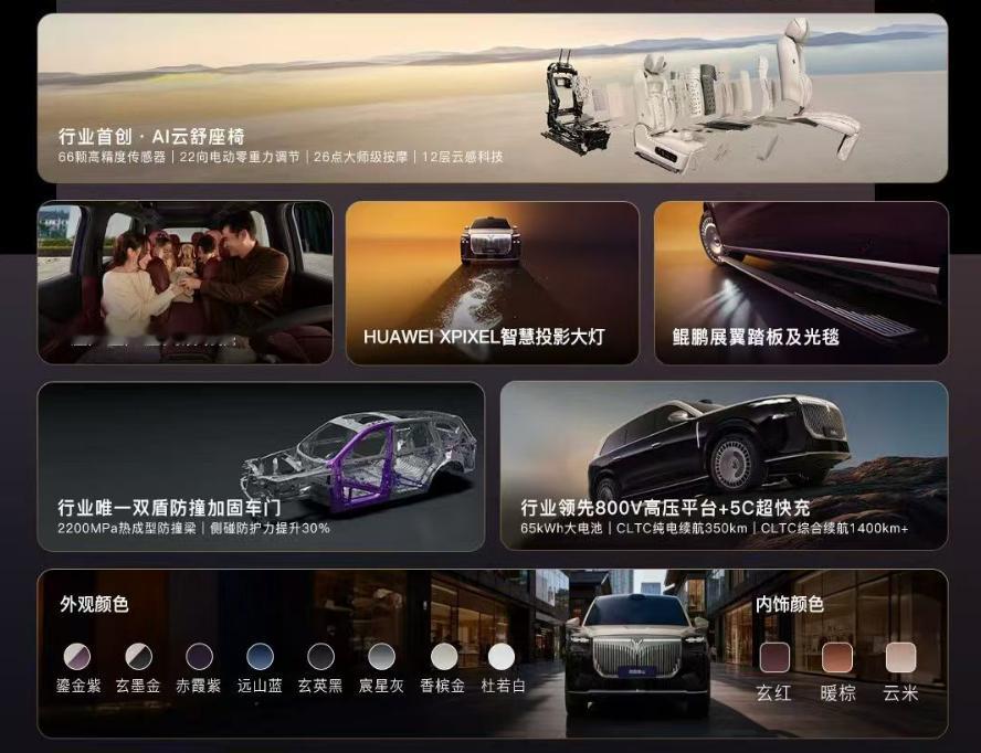 岚图泰山今天正式上市,四个版型,Max版售价37.99万,Max+版40.99万,起步就是顶配。Ultra版45.99万,带专属光谱格栅,可调隐私玻璃。黑武士版售价50.99万,限量发售,内外全黑化,明年登场。另外还有4.8万的上市权益+尊享计划,具体内容上图了,配置很全,简单大家过一些标志性的。- 标准的大六座尺寸,2款双拼,6款单色,内饰的红色特别雅,第三排空间头腿宽都接近1米,32扬音响配置。- 青云平台2.0全面优化,8大项硬核技术,双向16度后轮转向,5.4m 转弯半径,三腔空悬+EDC魔毯底盘。- 同级最大9安全气囊,岚海智能超混,800V+5C,65度大电池,350km纯电续航,1400+综合续航,长途续航不焦虑。- 华为乾崑四激光雷达,行业最顶硬件,鸿蒙座舱5,AI云舒座椅,13L双开门冰箱,10屏互联,55英寸AR-HUD。岚图泰山我们拍过两次了,有鼓楼周边的品鉴,也有越野场地实测,静态动态都讲的很清楚,感兴趣的铁汁们可以过一遍,正式价格达到你们的预期了吗?评论区走一波。