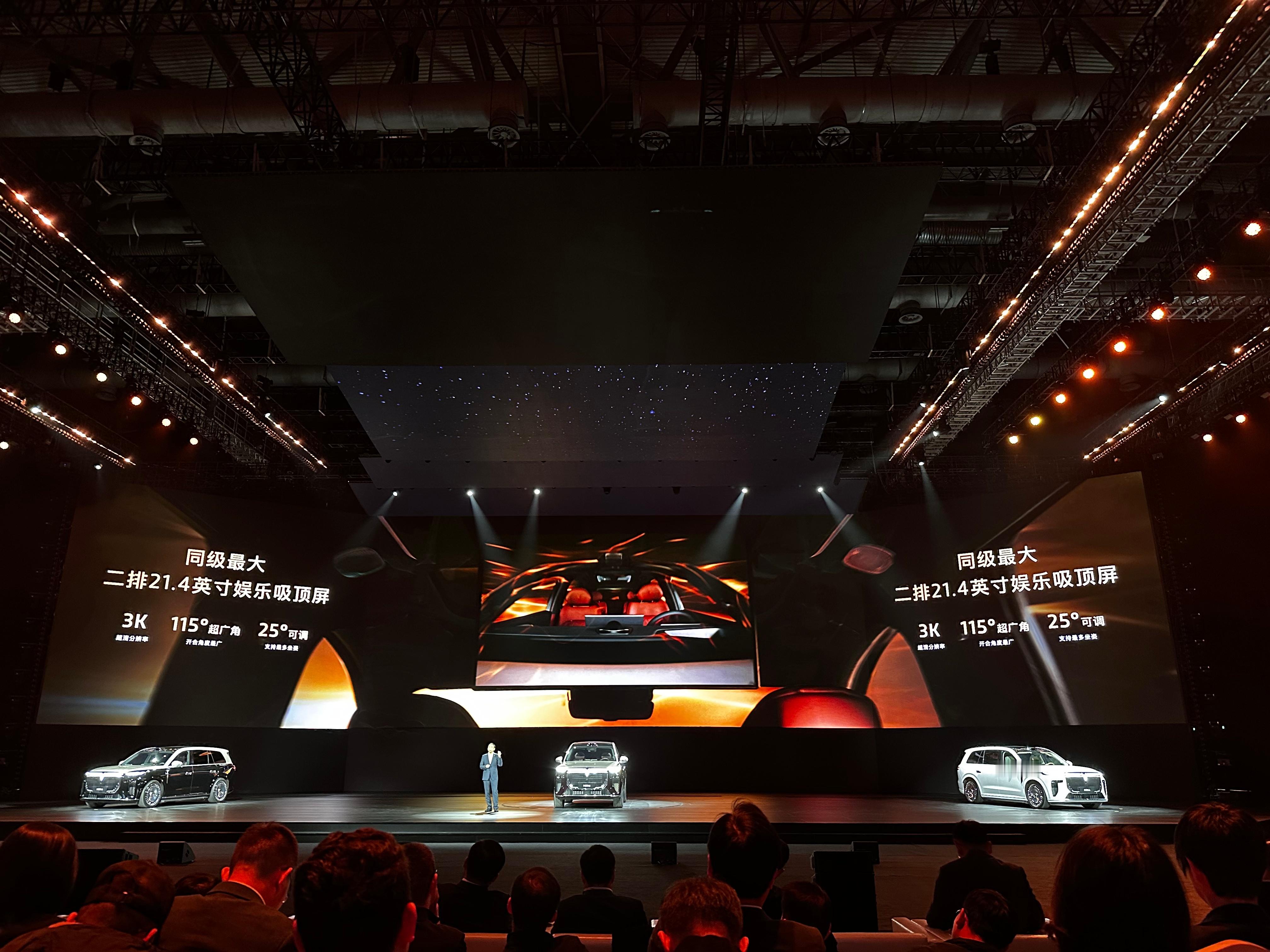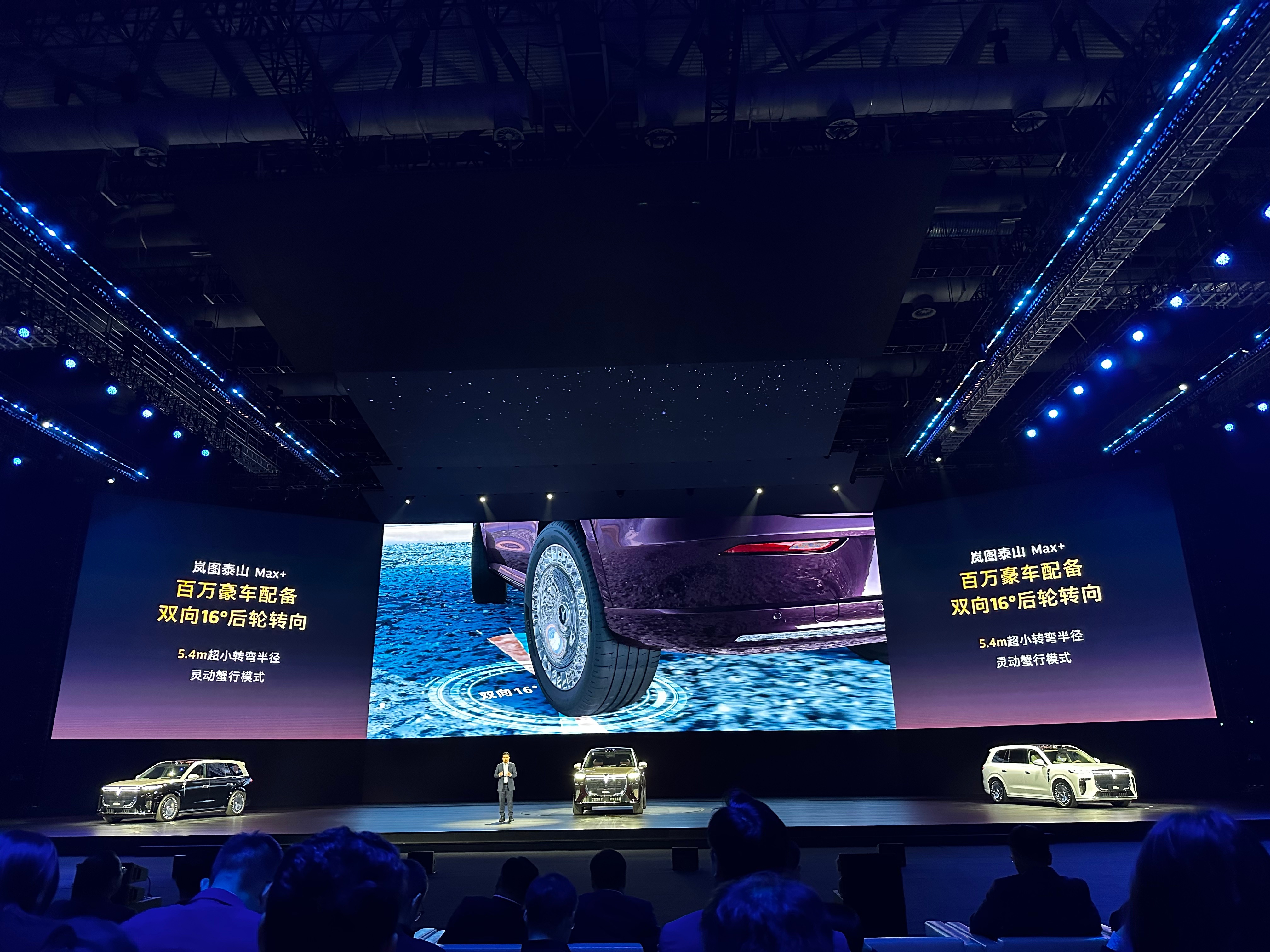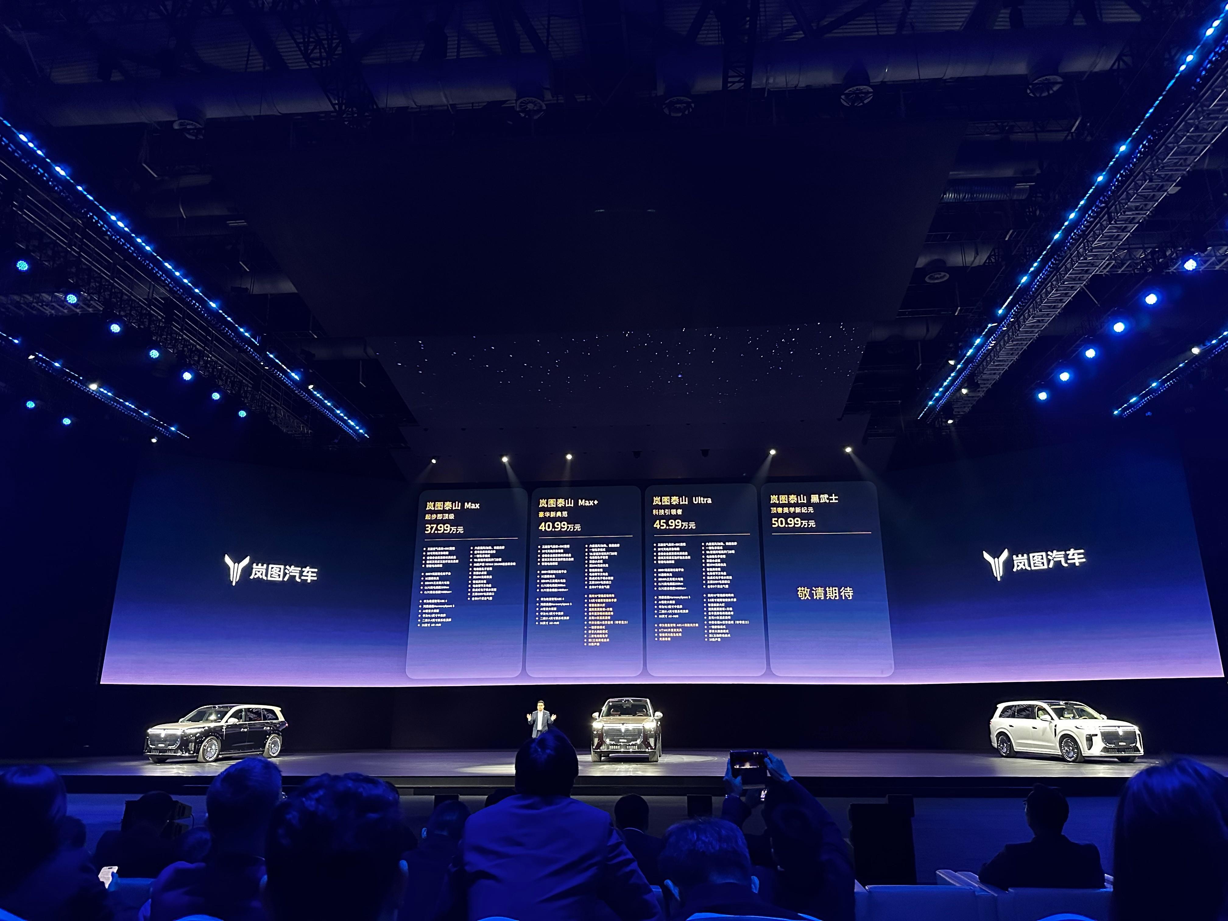 打造自家旗舰六座SUV,对标9系,名为岚图泰山外观顶奢那味道,有MPV式的前脸设计,发布会主题为“争锋”,顶配车型50.99万二排屏是21.4英寸,是比较大的。座舱使用鸿蒙系统,十屏联动。标配华为乾崑智驾ADS4。 国内首发三腔空悬系统,支持4种刚度调节,配合EDC魔毯功能实时预判路况;双向16°后轮转向使5.2米车身转弯半径仅5.4米,灵活性媲美A级车。800V超混平台:1.5T发动机(110kW)+双电机(380kW),零百加速5.2秒;CLTC纯电续航370km,综合续航1400km+;支持5C超充,20%-80%补能仅需12分钟