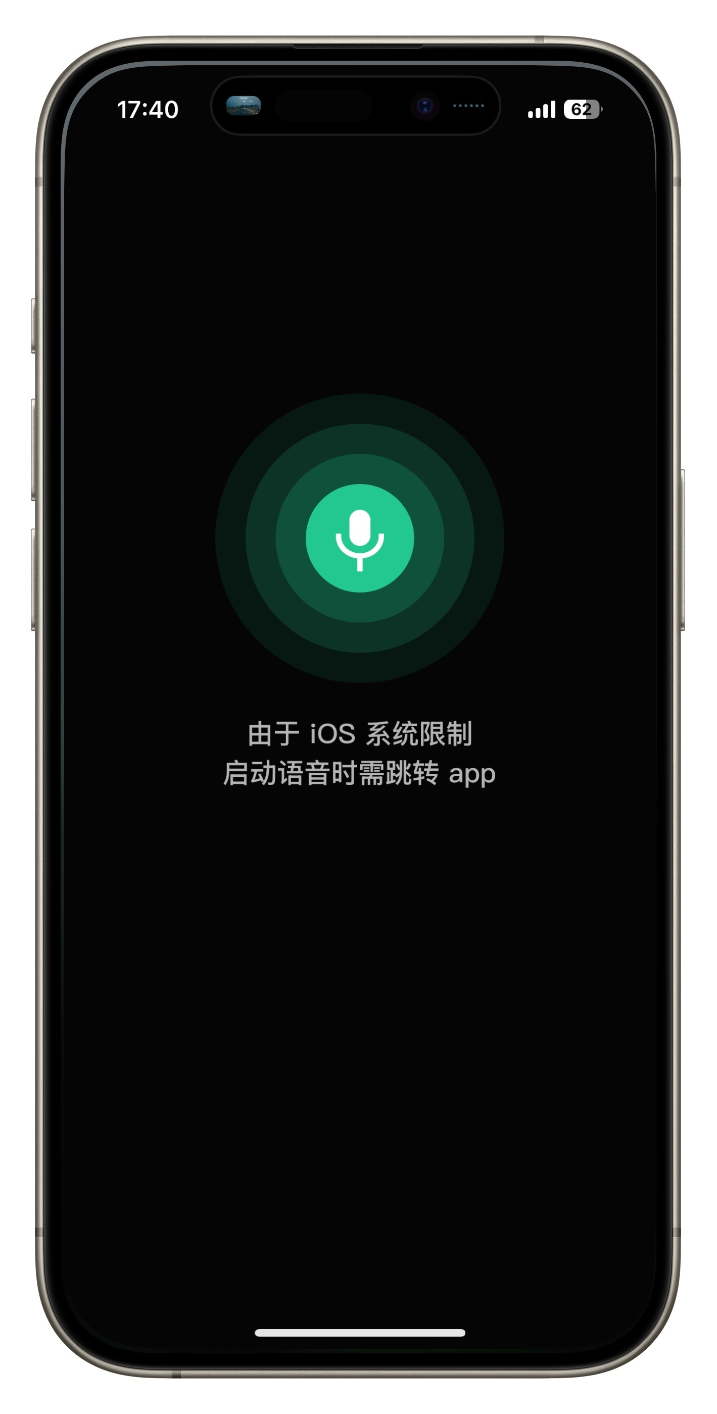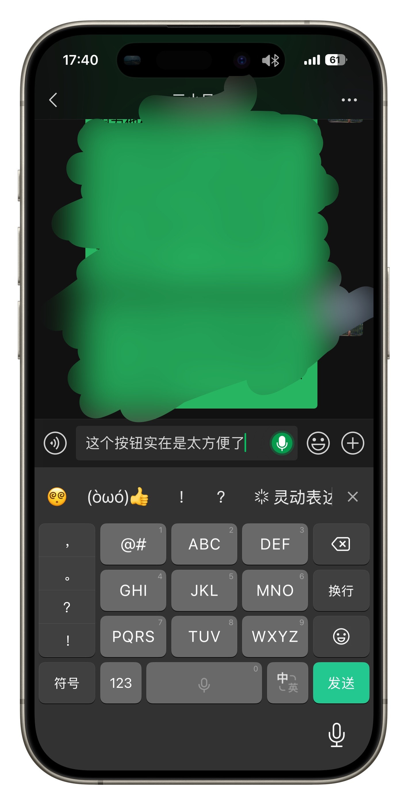 有时候真的对微信又爱又恨,最新微信发现输入框右边有了一个“语音按钮”。而且识别准确率特别高,应该是跟微信输入法的是同一个底层。这对iPhone来说体验提升太多了,之前用微信输入法的语音转文字都有图2的跳转提醒,很烦。现在舒服了。