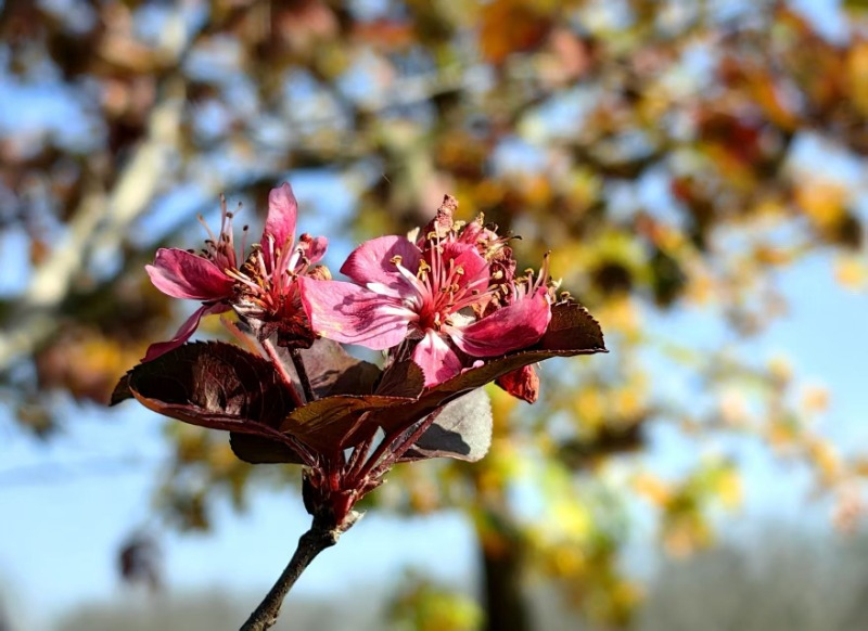 【:前期气温偏高,导致其误判为“春天来临”】18日,一场寒潮将安徽大部推进了寒冬。当天早晨,市民向先生在合肥街头看到有海棠绽放,感到很惊奇,“海棠花一般不都是春天开放吗?”苗木花卉专家对此解释道,海棠树秋季开花是一种被称为“二次开花”的生理现象,海棠花开主要由花芽分化、营养状况、气温等多种因素促成。18日上午,安徽省农科院研究员、苗木花卉专家任杰看到大皖新闻记者传来的海棠花绽放的照片后表示,最近几年每年都有这个现象,“深秋初冬季节,经常可以观察到少量海棠花开放的现象。”随后,大皖新闻记者在采访中了解到,市民胡先生在合肥高新区也看到了海棠开花的景象,并且也拍下了几张照片。18日下午,在向先生的指引下,大皖新闻记者赶到他早晨拍下海棠花的地方。记者在现场看到,在匡河的南岸,一株海棠树上零星地开着一些花朵。海棠一般是在春天开花的,那么为何在这个季节还有海棠开花呢?任杰介绍,海棠花芽一般在秋冬季逐渐完成分化,然后进入休眠状态,待次年春季开放,因此正常来讲海棠是在春季开花的。不过,在有些年份,秋季气温偏高、昼夜温差大且降水充足,当白天气温持续在20℃以上、夜间不低于10℃时,温湿度条件与春季相似,部分海棠花芽发育较为成熟,海棠树会误判为“春天来临”,结束休眠状态提前开花。前段时间,安徽省包括合肥市气温处于偏高状态,正是这温暖的气候条件导致部分海棠花绽放。任杰进一步解释,除了秋季气温偏高的大环境,一些海棠树所处的小环境如果比较适宜 (如养分充足、背风向阳),部分花芽也可能提前开放。18日下午,大皖新闻记者看到,开花的那株海棠附近没有高大的树木遮挡,受光条件较好。( 记者 赵明玉)