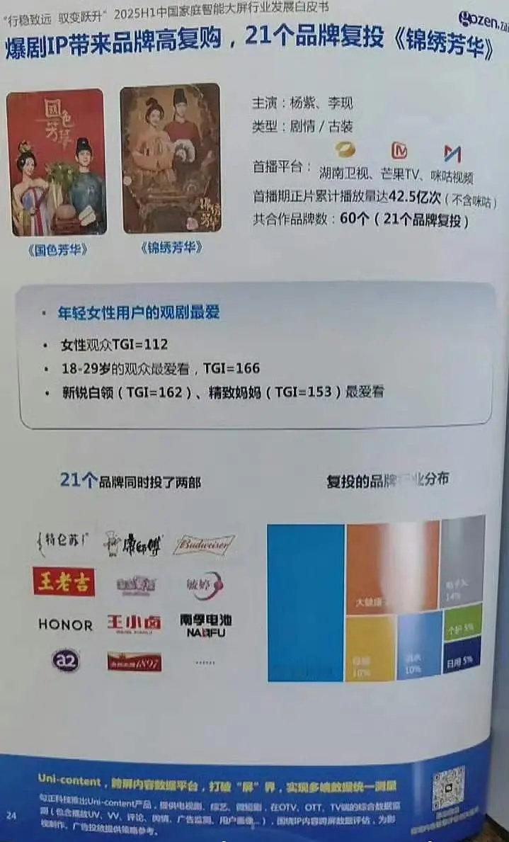 中国家庭智能大屏行业发展2025年上半年白皮书夸了杨紫国色芳华和锦绣芳华