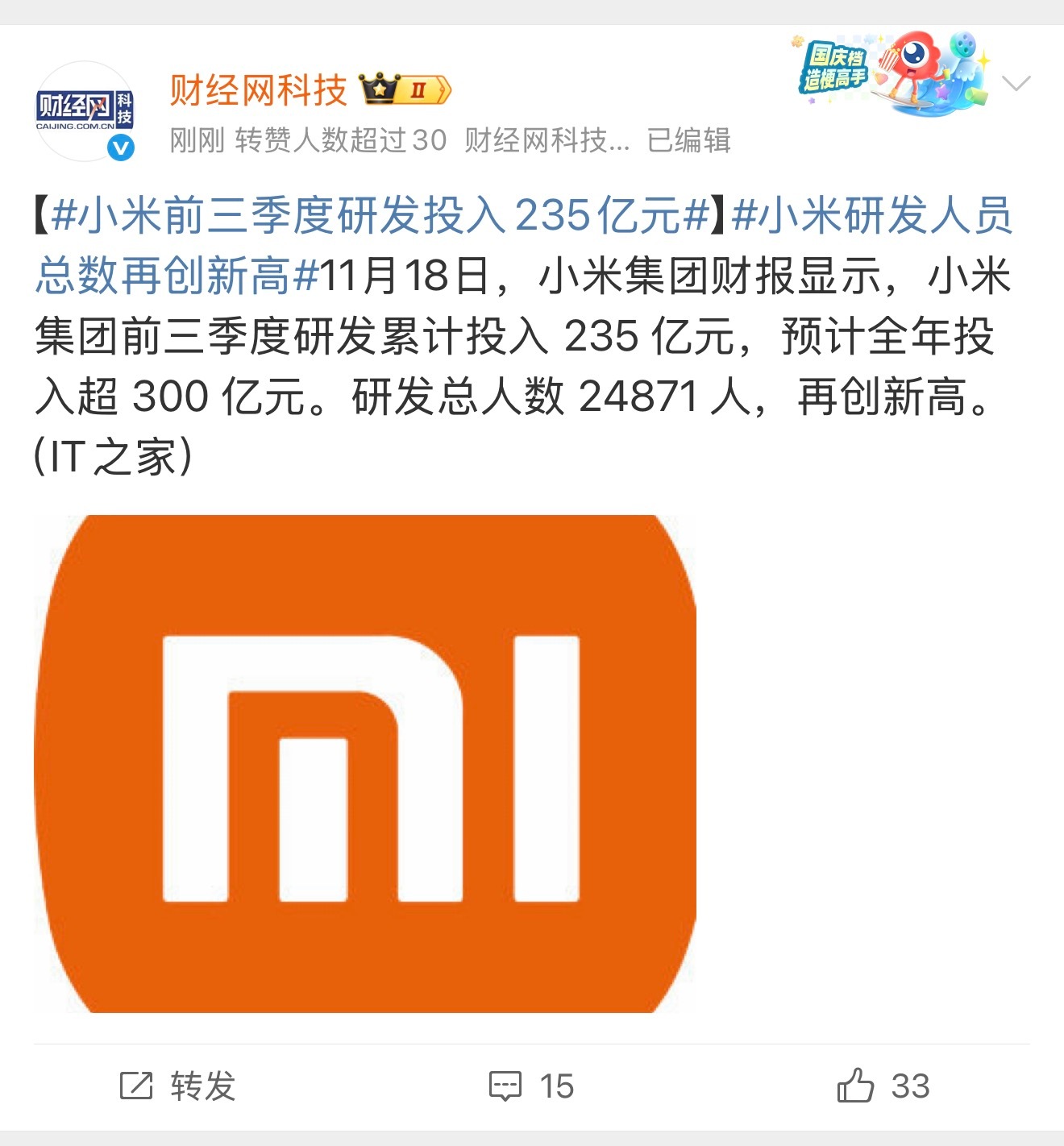我米这次好像真换了营销,你们看看这水平,研发总人数24871人,再创新高,细品这四个字,再创新高。看来后面小米可能要走向这种硬实力的方式,而不是感动人心的演讲了。