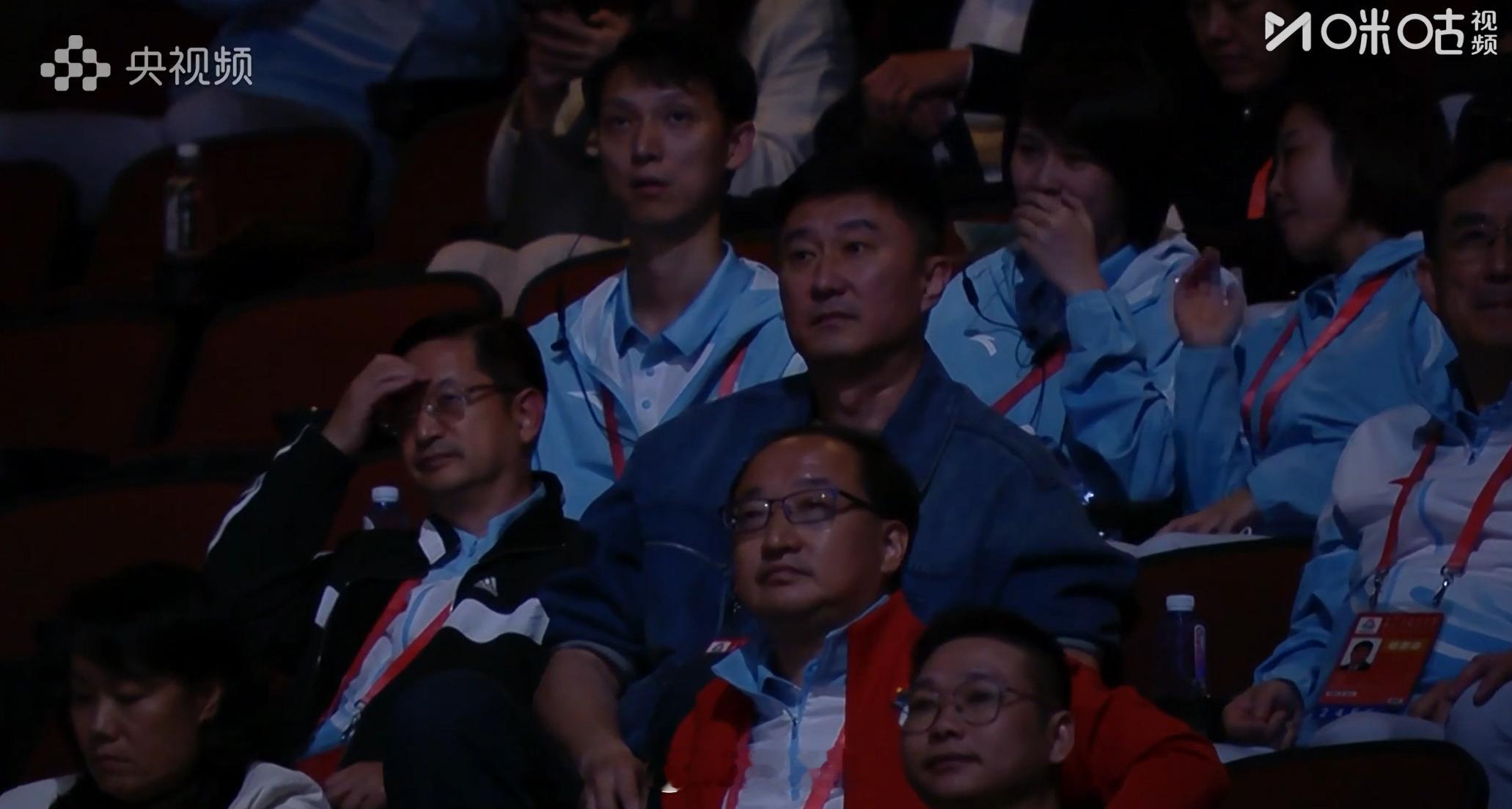 山东U18男篮反超2分,看台上的杜锋指导看着有点紧张。