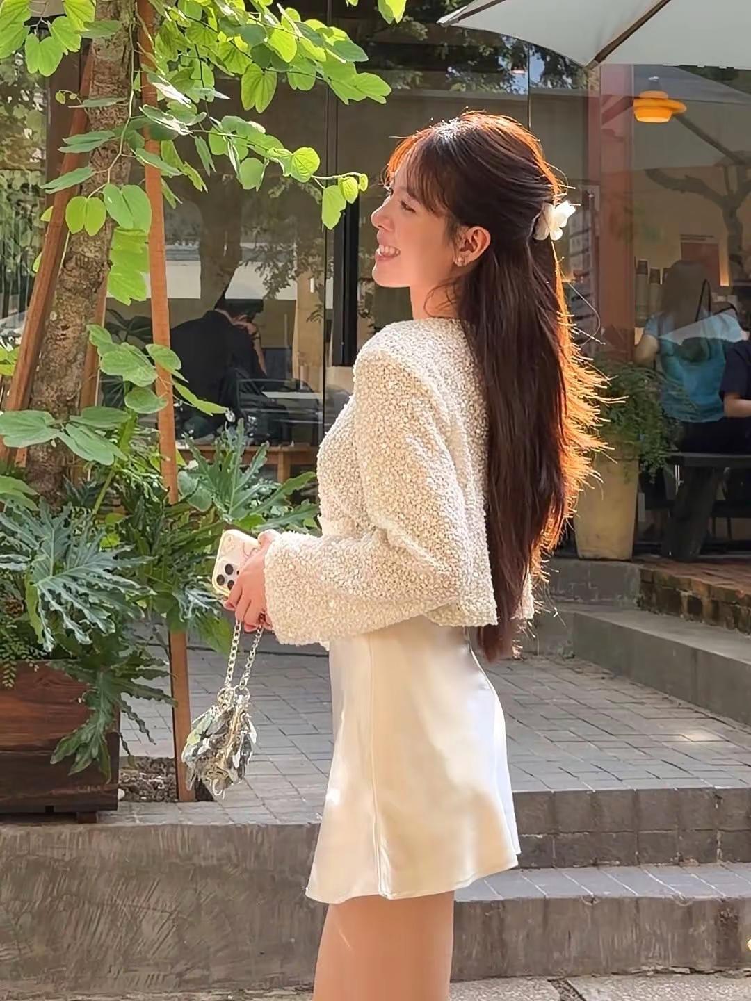 法式气质显瘦小香风套装女秋冬季名媛风减龄蝴蝶结外套半裙两件套