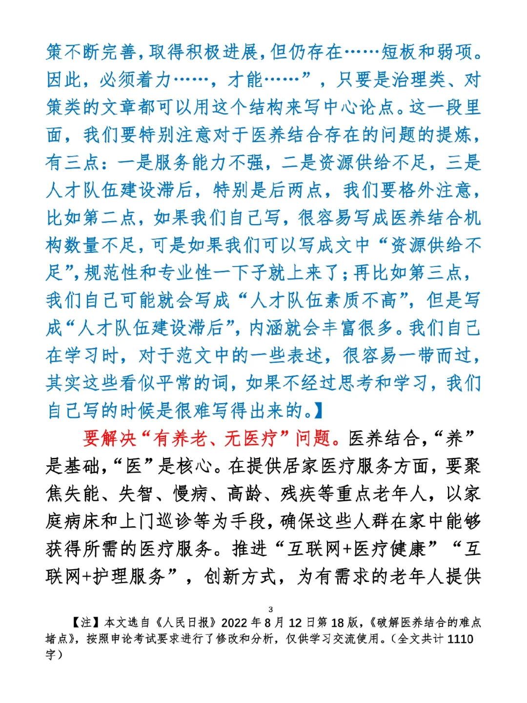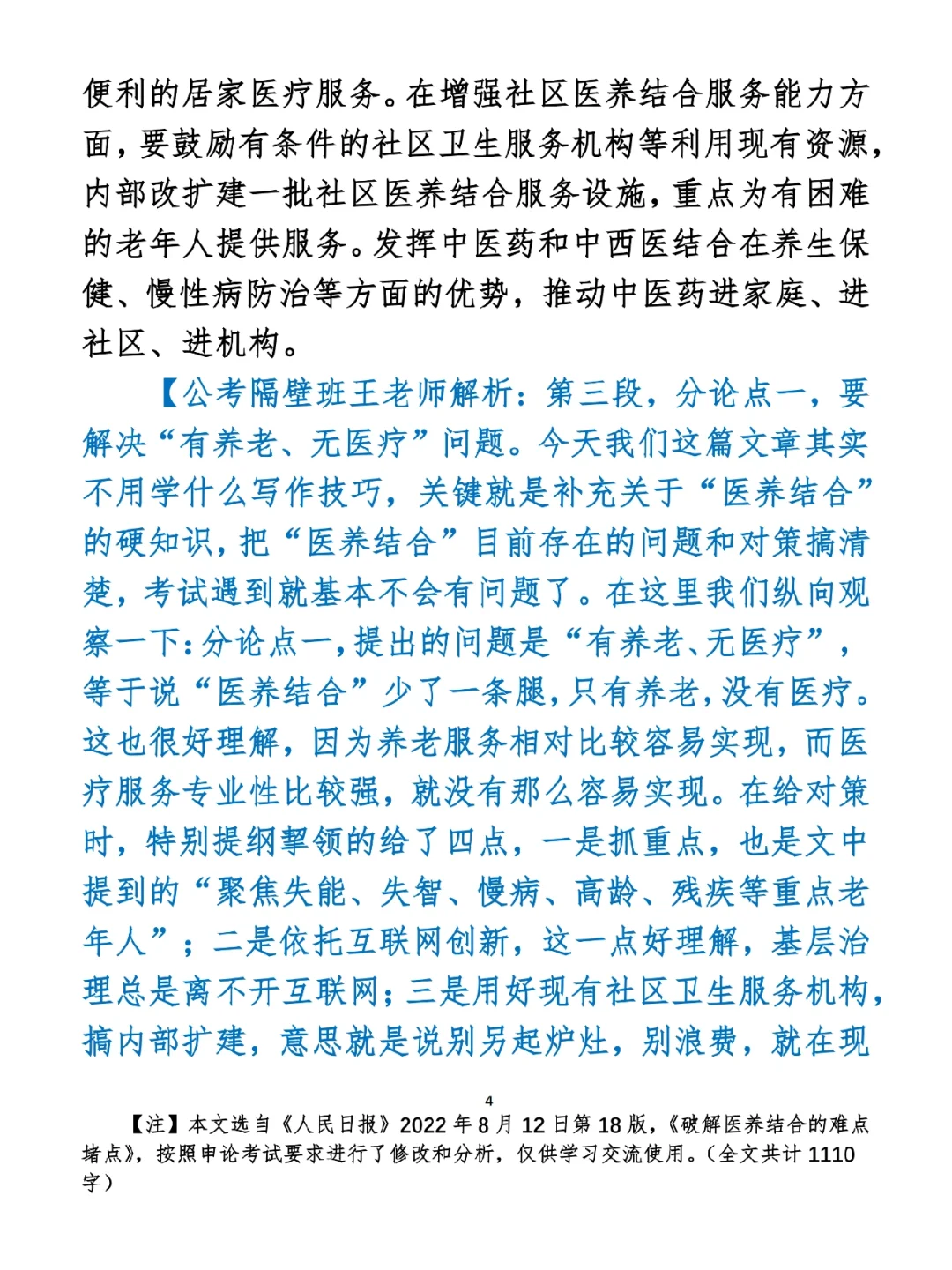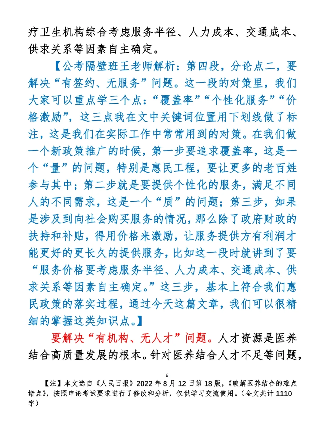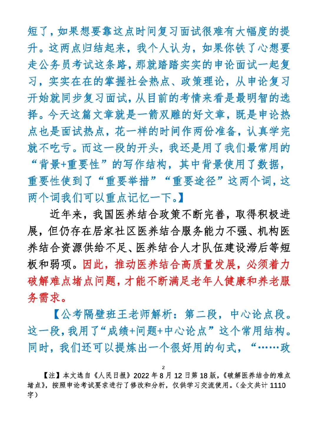 今日打卡作业: 1. 完成填空题 2. 抄写全文红字+划线部分内容 3. 写完后在留言区打卡 ⭐️ ⭐️ ⭐️ ⭐️ ⭐️ ⭐️ 如何抄写:每天的抄写文章以图片形式发在“公考隔壁班王老师”账号,红色字是重点句和结构句,黑色字是正文,蓝色字是解析,大家抄写时不必抄蓝色字。建议先通读全文(包括蓝色解析部分),做到心中有数再开始抄写,效果会更好。 关于文章:抄写文章来源于人民日报,但每篇文章我都根据申论考试要求进行了修改,主要集中在四个方面:一是重写或修改开头、结尾;二是统一段首句句式结构;三是调整段落字数,使文章结构更均衡;四是简化复杂长难句,使之更具可模仿性。每篇文章修改幅度不同,无论修改多少,都是基于申论考试要求,毫无对人民日报文章品评之意。(此处致敬人民日报) 关于解析:我会在文章每段后面加一段蓝色字的解析,是我自己在抄写时的感悟,篇幅时间有限,不能面面俱到,但求重点突出。如果你有其他感悟,也希望能在评论里分享,我们相互学习、共同进步。 ⭐️ ⭐️ ⭐️ ⭐️ ⭐️ ⭐️ 这里是公考隔壁班王老师独创的“每天半小时・申论80分”抄写团,欢迎加入我们!