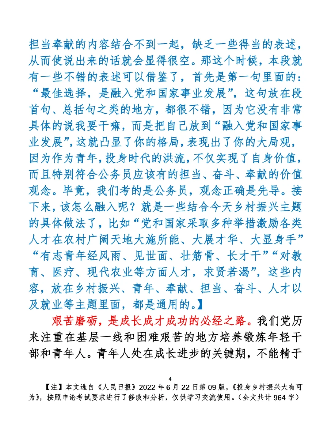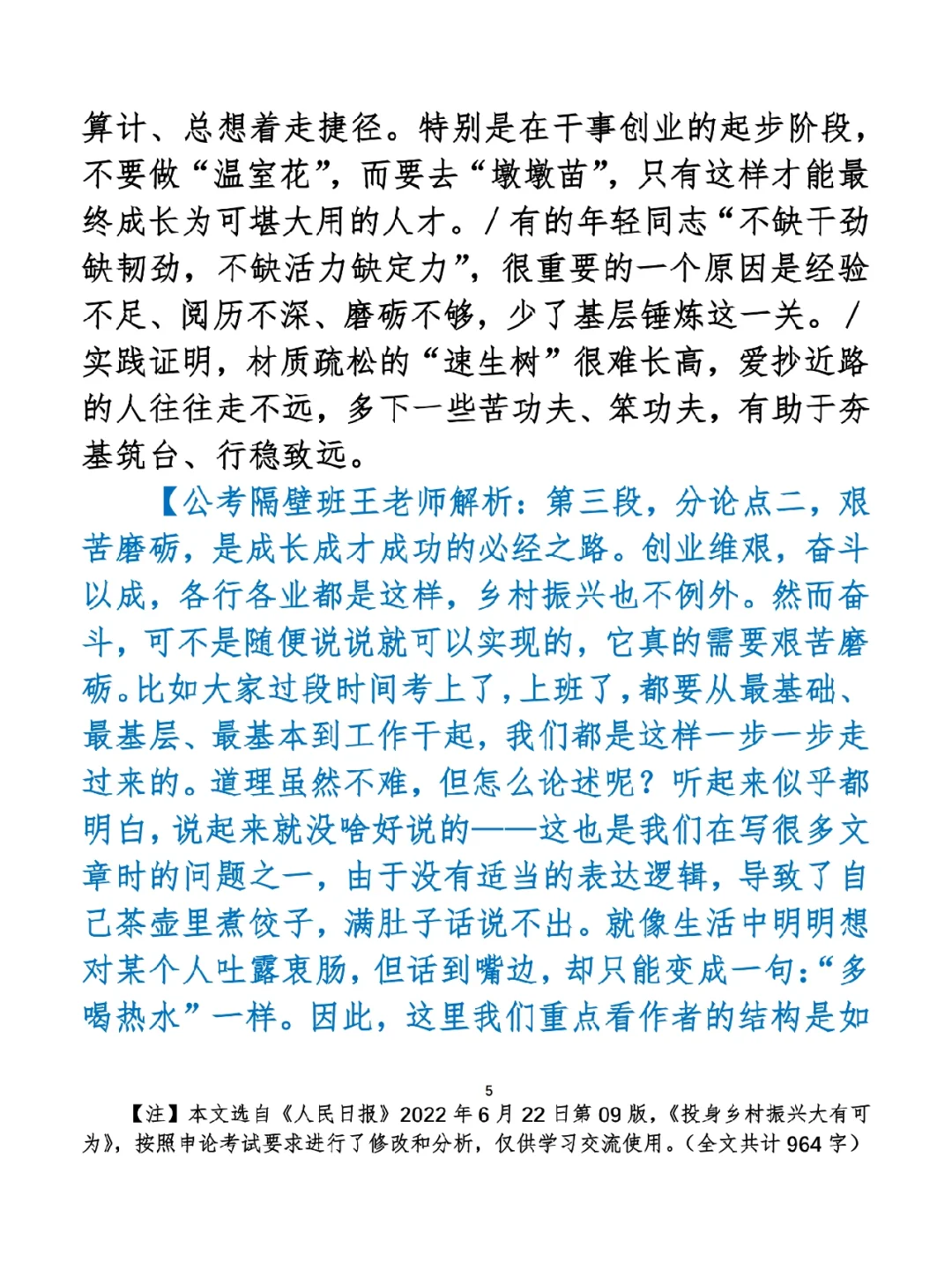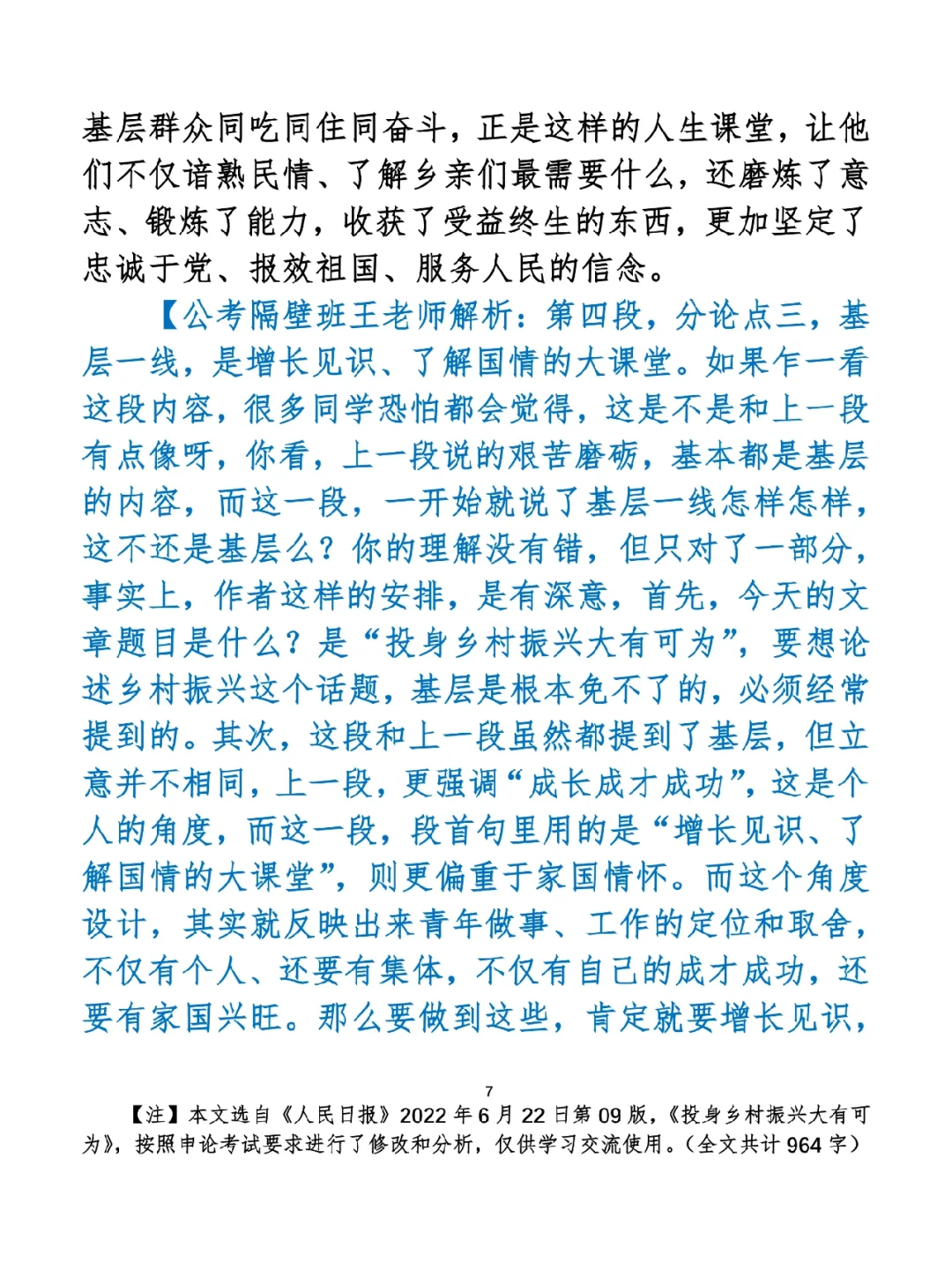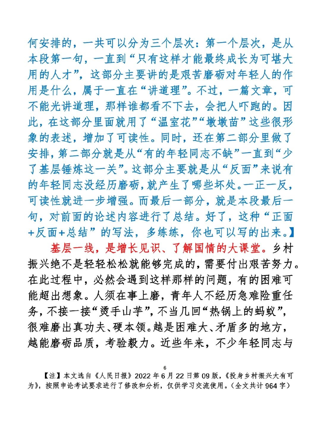 1.如何抄写:每天的抄写文章以图片形式发在“公考隔壁班王老师”账号,红色字是重点句和结构句,黑色字是正文,蓝色字是解析,大家抄写时不必抄蓝色字。建议先通读全文(包括蓝色解析部分),做到心中有数再开始抄写,效果会更好。 2.关于文章:抄写文章来源于人民日报,但每篇文章我都根据申论考试要求进行了修改,主要集中在四个方面:一是重写或修改开头、结尾;二是统一段首句句式结构;三是调整段落字数,使文章结构更均衡;四是简化复杂长难句,使之更具可模仿性。每篇文章修改幅度不同,无论修改多少,都是基于申论考试要求,毫无对人民日报文章品评之意。(此处致敬人民日报) 3.关于解析:我会在文章每段后面加一段蓝色字的解析,是我自己在抄写时的感悟,篇幅时间有限,不能面面俱到,但求重点突出。如果你有其他感悟,也希望能在评论里分享,我们相互学习、共同进步。 ⭐️ ⭐️ ⭐️ ⭐️ ⭐️ ⭐️ 这里是公考隔壁班王老师独创的“每天半小时 申论80分”抄写团,欢迎加入我们!