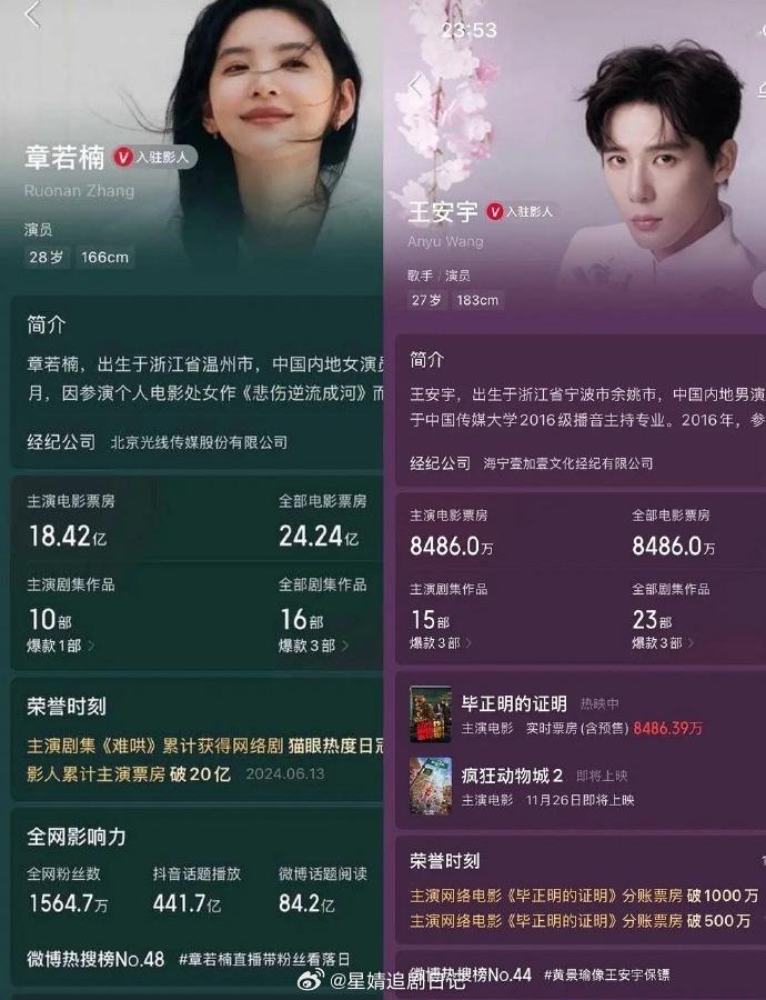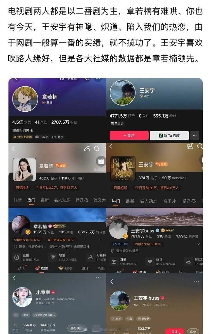 这样看《你那儿几点》应该是章若楠一番了!章若楠实际实绩比王安宇强吗?网友分析电视剧都差不多,电影上章若楠一番成绩更好,各平台也是章领先~章若楠粉丝battle出了一股热血感,追出了一股志气,完全是让我刮目相看的程度。