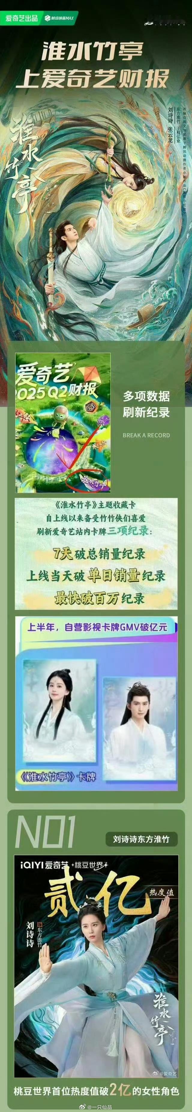 刘诗诗《淮水竹亭》二登爱奇艺财报,连登第二季度,第三季度财报,跨越了两个季度我真是从打心眼里的佩服一姐,太牛了,财报女王就是财报女王,这是公认的。含金量高的恐怖