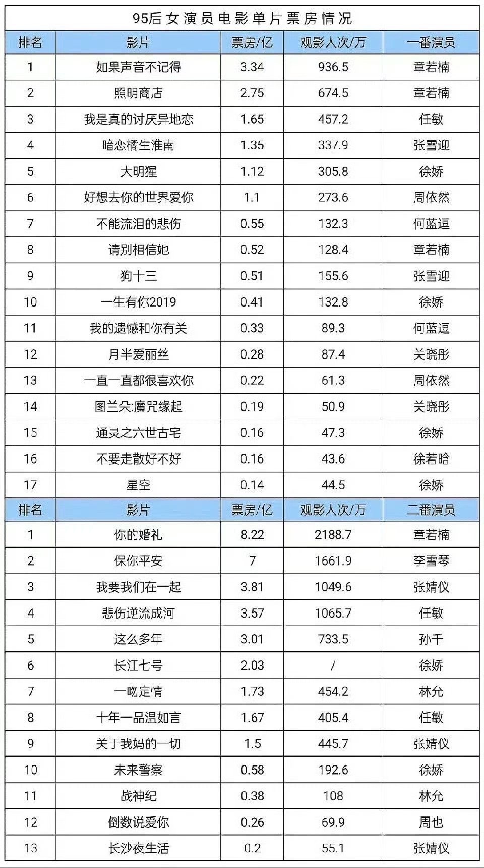 95后女演员电影单片票房情况,上榜多部影片,号召力好强!