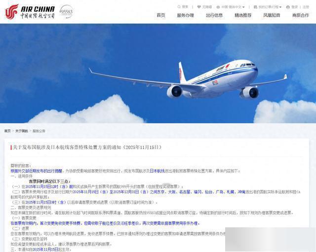11月19日,据央视新闻报道,从11月16日开始,中国🇨🇳多家航空公司取消日本航班,国航、南航、东航等多家航空公司取消部分航班,具体涉及日本东京、大贩、札幌等城市。各大航空公司为赴日本旅游人员办理退票手续。 同时,国内多家旅行社宣布日本酒店退房通知。 中国🇨🇳基本上停止到日本旅游的所有业务,留学日本的也在暂停状态,这是日本首相高市挑衅中国🇨🇳采取反制措施第一步。