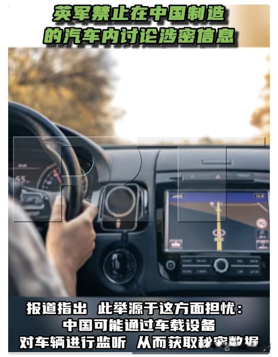 11月17日,据《每日邮报》报道,英国国防部禁止军人在公务车辆内讨论与工作相关的信息。报道指出,此举源于这方面担忧:中国可能通过车载设备对车辆进行监听,从而获取秘密数据。 据悉,这些用于运送军人和军事装备的车辆仪表盘上,已经贴上了醒目的警示贴纸。贴纸内容写着:“避免在车内讨论官方性质的信息。” 根据相关公开信息,英国国防部确实因担心潜在的网络间谍风险,特别是针对中国技术的担忧,更新了其公务车辆的使用规定。不得将任何官方电子设备连接到车辆上。避免在车内讨论安全等级高于“OFFICIAL”(官方)的敏感信息。 这些警告以贴纸的形式出现在数百辆用于运输人员和装备的“白色车队”车辆的仪表板上。 对于类似的指控,中国方面曾多次予以否认。中国驻英国大使馆发言人曾发表答记者问,明确指出相关指责“毫无根据,纯属捏造”,并表示中国“没有必要,也没有兴趣去搜集英国车辆定位的信息”。 英国人杯弓蛇影,自相惊扰,英国情报间谍无孔不入,反倒是以一己之心,度他人之腹。世界早就流传一个一个笑话,英国官方出国公务,都是自己带帐篷⛺️。