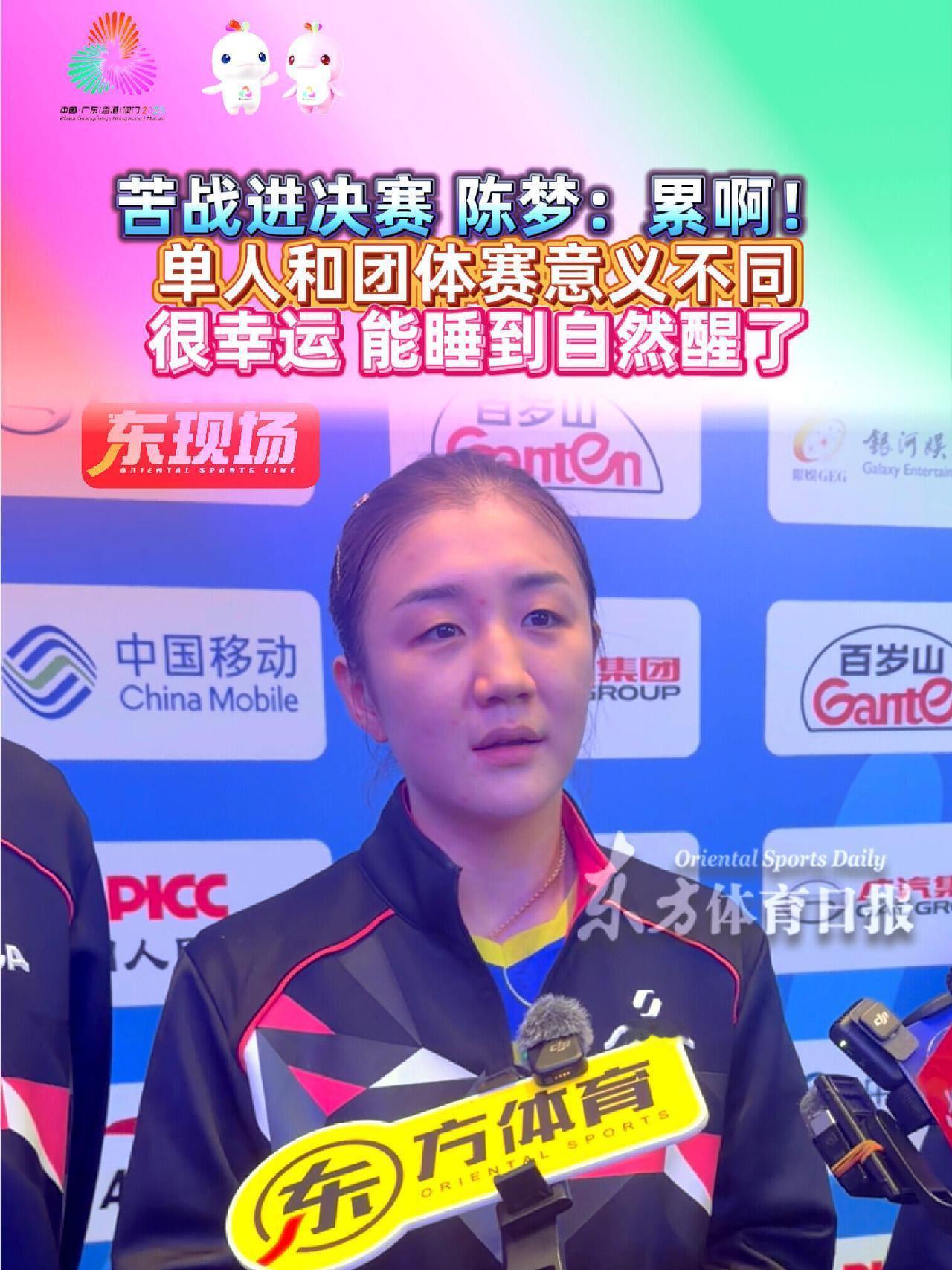 陈梦团体赛接受采访,净说大实话,明天可以睡到自然醒了,梦姐很轻松,看重团体赛! 山东队很燃,大姐大带队冲刺真的很棒,这一次很圆满的进入决赛,太稳了,陈梦也找到了团体赛的意义,整个团队尽力了,鲁队的坚韧和强大的意志力很感人,决赛尽力就好,毕竟都是强大的队伍对决了,输输赢赢都是努力的结果!