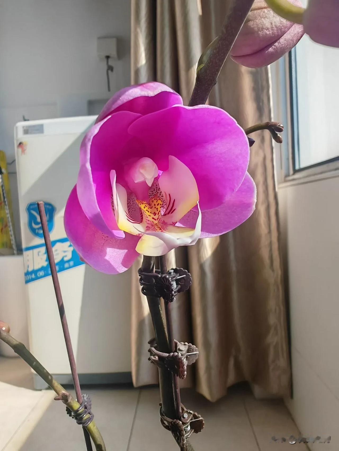 《咏蝶兰》 一夏秋来育这厢,终迎紫瓣吐幽光。 形如蝶舞窗台畔,韵若诗成梦笔旁。 曾共晨昏凝露重,今随朝夕散香长。 莫叹花开时岁久,一朝绽放满庭芳。