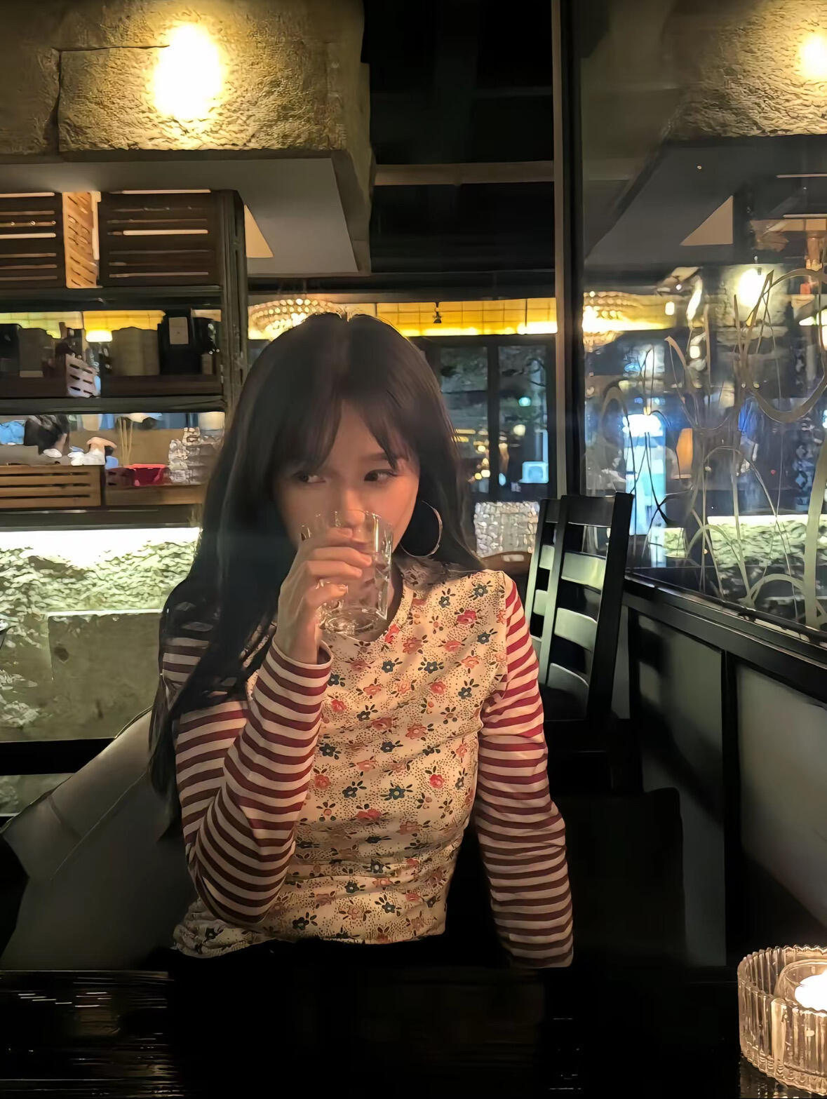 刘亦菲喝醉酒微醺的状态被拍到,脸上已经泛起了红晕,被拍到后眼神微怒