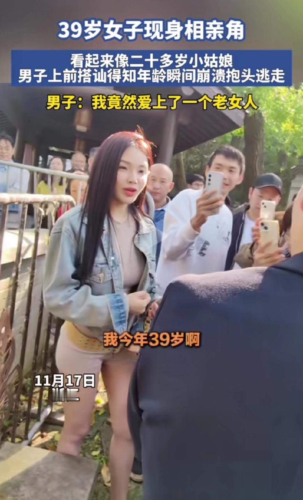 11月17日浙江,一名39岁的女子现身相亲角。她长发披肩,身材苗条,打扮时尚,乍一看就是二十多岁的小姑娘,妥妥的淑女范。 这时一名男子上前搭讪,本来美滋滋的,结果得知女子年龄是39岁后,直接崩溃,竟然抱头逃走了。 年龄难道就这么重要吗?大家觉得在相亲里年龄是不是个大问题啊?