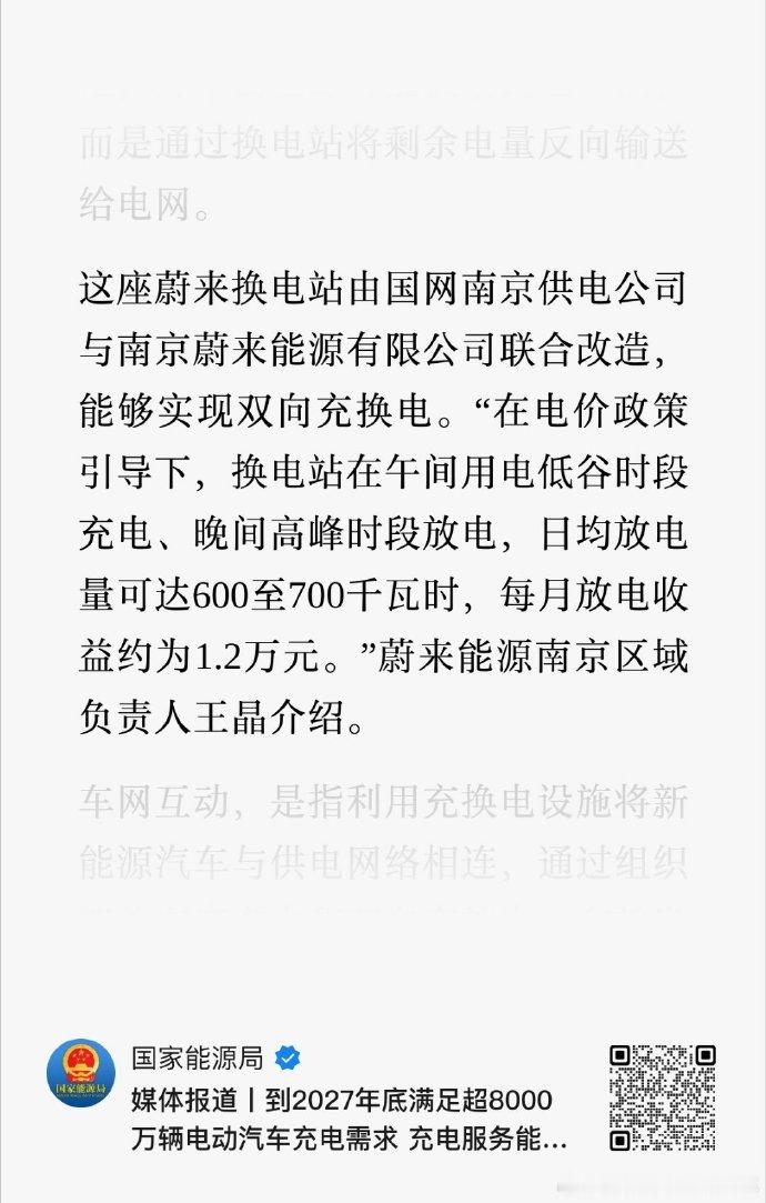 这才最大发挥换电站优势,这也是为什么上面老大一直强力支持换电站的原因。可以把谷电(不用就浪费掉)全部利用起来,哪怕只有30%那都是一个天文数字的电量。等于同样的单位时间,我们的利用率、发电量、收益都多了30%。抬头看看天,哥哥们。如果你看不懂换电站,那说明你离发菜还有十万八千里。
