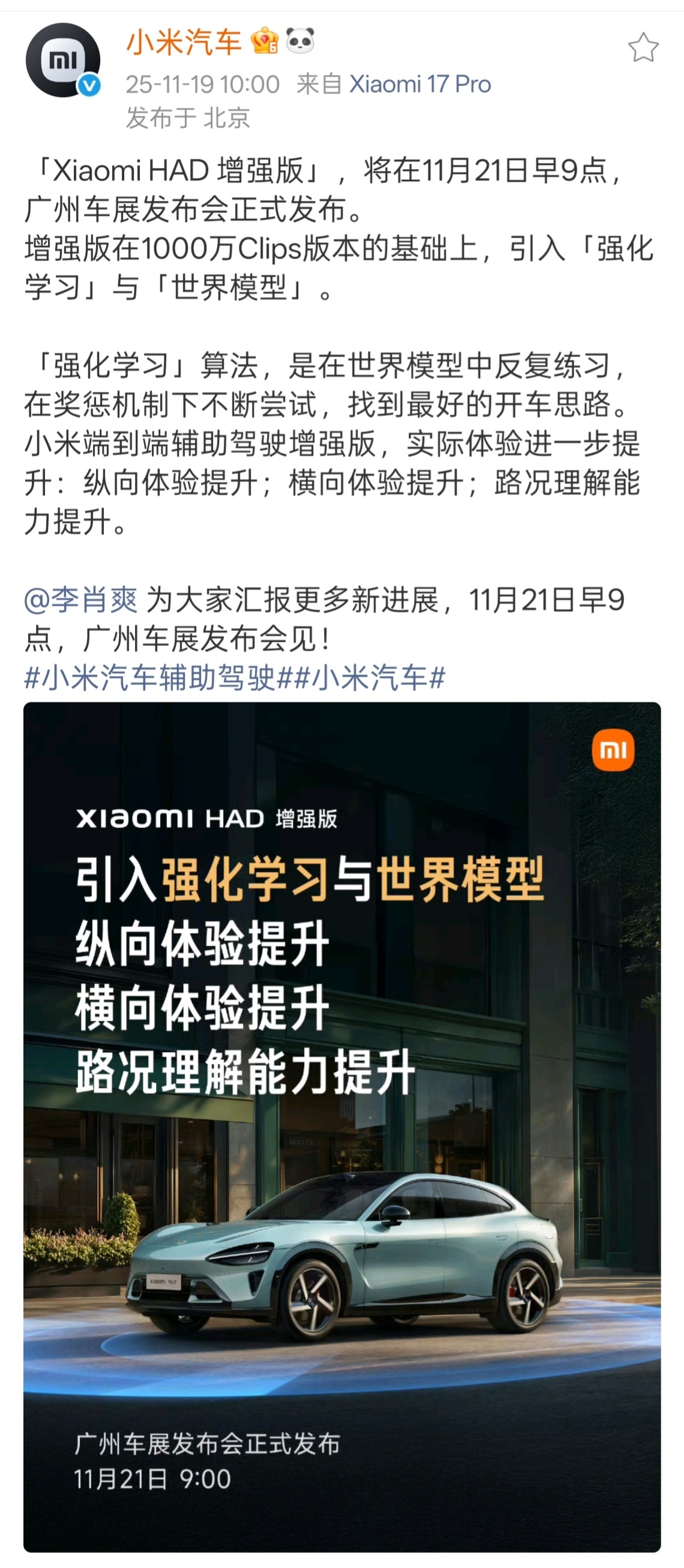 和我猜的一样,小米的Xiaomi HAD增强版就是强化学习的版本。大致应该是用世界模型进行场景重建,为智驾提供「错题集」和「模拟题」,不断强化端到端本身的能力。从放出大风讲应该效果,坐等实际表现了~