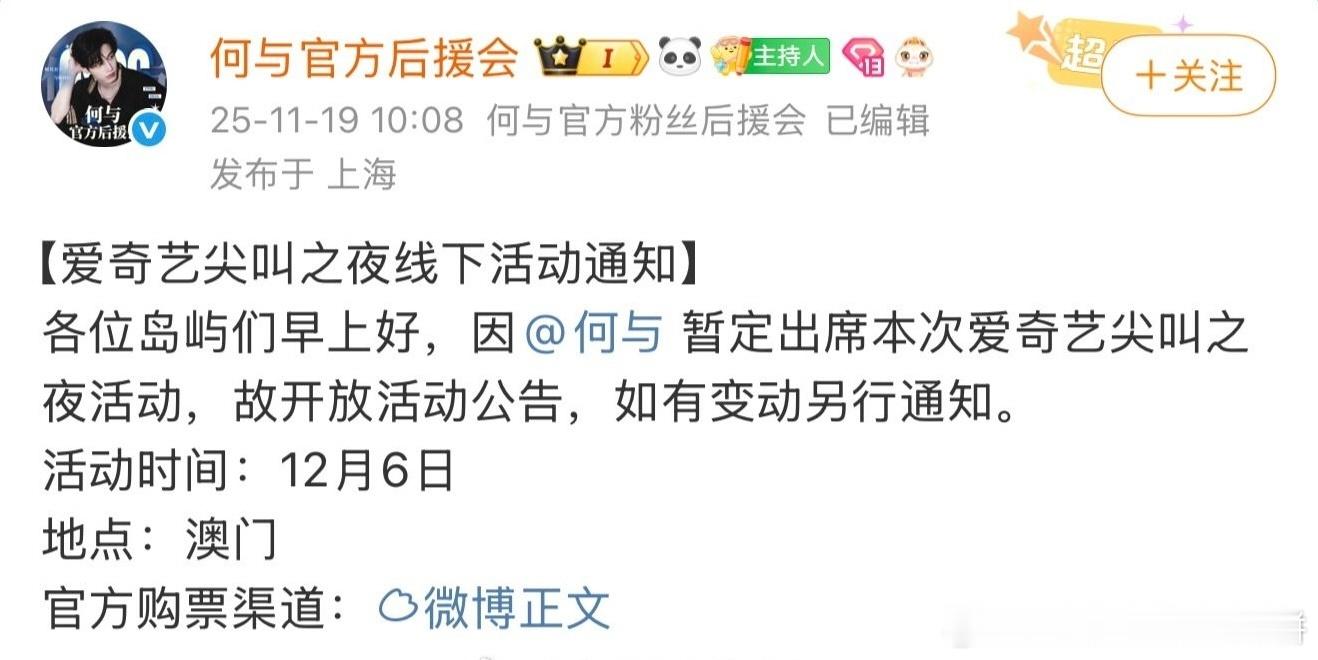 热闹来了,任嘉伦、白鹿、张凌赫、邓为、侯明昊、曾舜晞、刘学义、丞磊、何与、沈月、祝绪丹确认出席爱奇艺尖叫之夜