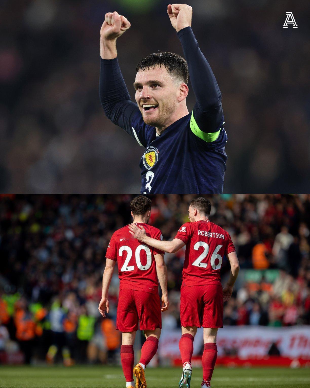 【罗伯逊缅怀若塔❤️】苏格兰在汉普顿公园4-2击败丹麦,成功晋级世界杯!队长罗伯逊赛后缅怀了若塔,“今天我心情非常复杂。我知道自己现在的年龄,这可能是我最后一次参加世界杯的机会。” “我今天一直想着我的朋友:迪奥戈-若塔。我们经常一起谈论世界杯,他因为伤病错过了卡塔尔,而我则因为苏格兰没有晋级而错过了。” “我们总是在讨论去参加这届世界杯会是什么感觉。我知道今晚他会在某个地方微笑着看着我。今天一整天我都无法将他从脑海中抹去。”世预赛