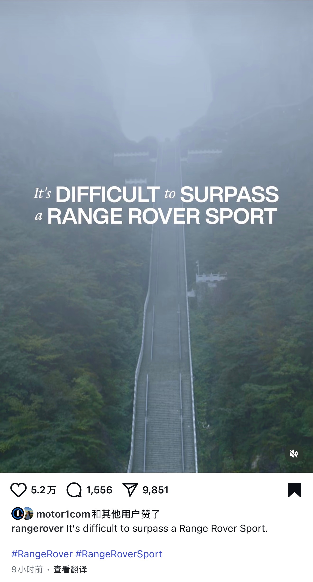 昨天晚上路虎的全平台文案:超越揽运,不是那么容易的It's difficult to surpass a Range Rover Sport所以你看,钱花了,宣传效果全让人家给抢走了。但谁好说这不是两家合资公司之间“搞暧昧”呢btw,看到图2的互动量了吗?(如果真是)你们俩搞暧昧,丢脸可不丢路虎的脸
