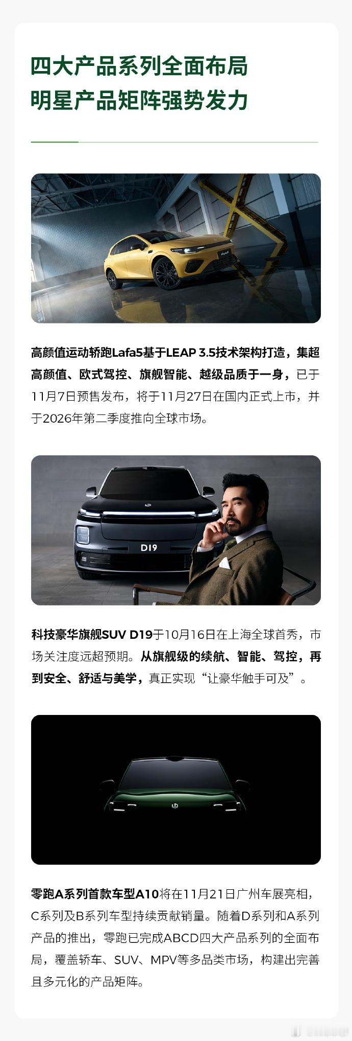 这两天,盈利的车企纷纷发布第三季度财报了……零跑开始连续季度盈利了,这个时候,零跑开始出“小众”车型,小轿跑Lafa5,大型D19都要上市了。这个节奏的把握,哪吒后面如果还能复活,真的要看下,学下。这种非主流的车型不是不能发,而是不能作为救命稻草来发,而是应该作为锦上添花,完善矩阵来发。基础盘打牢了,能大幅盈利了,再考虑。