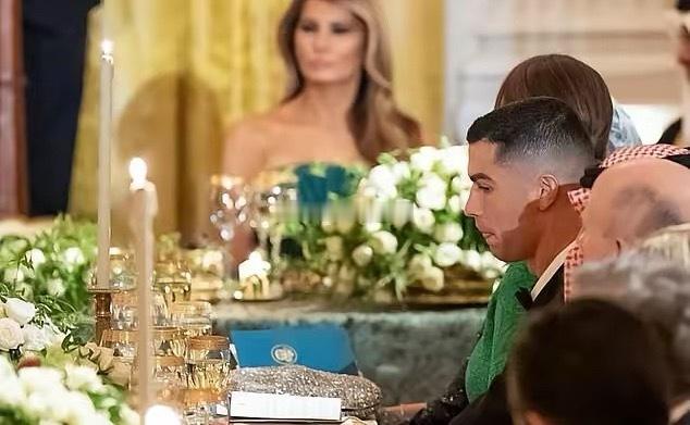 C罗现身白宫晚宴。特朗普说,“我儿子是C罗的超级粉丝,巴伦见到了他,我想他现在更尊重他的父亲了因为我介绍了你,所以我想感谢沙特王储穆罕默德·本·萨勒曼和克里斯蒂亚诺·罗纳尔多的到来。”
