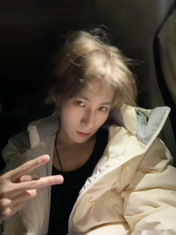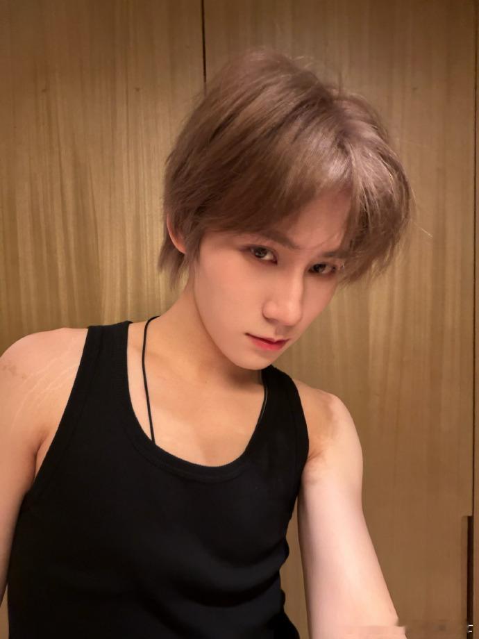 新发色藏不住的帅气,金发搭配黑背心,自拍角度超会,少年的阳光与不羁完美融合。