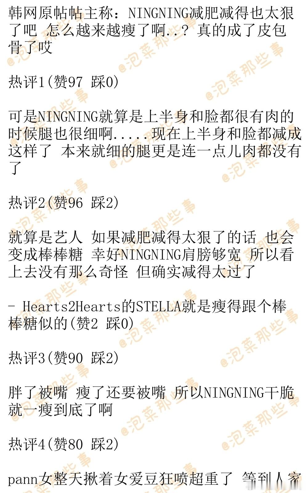 🔥韩网热帖评论翻译🔥aespa宁艺卓减肥减得也太狠了吧韩网原帖帖主称:NINGNING减肥减得也太狠了吧 怎么越来越瘦了啊..? 真的成了皮包骨了哎cr.pann