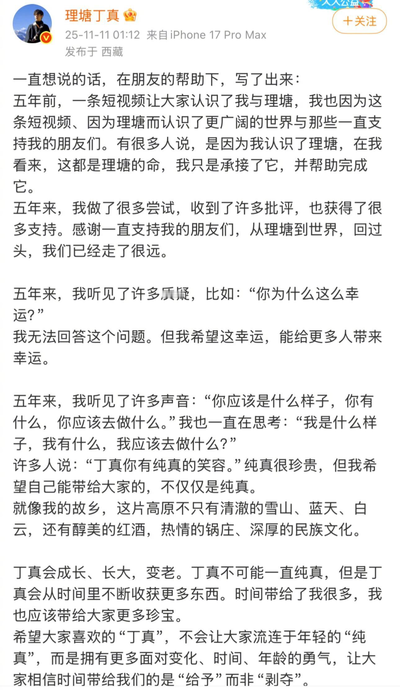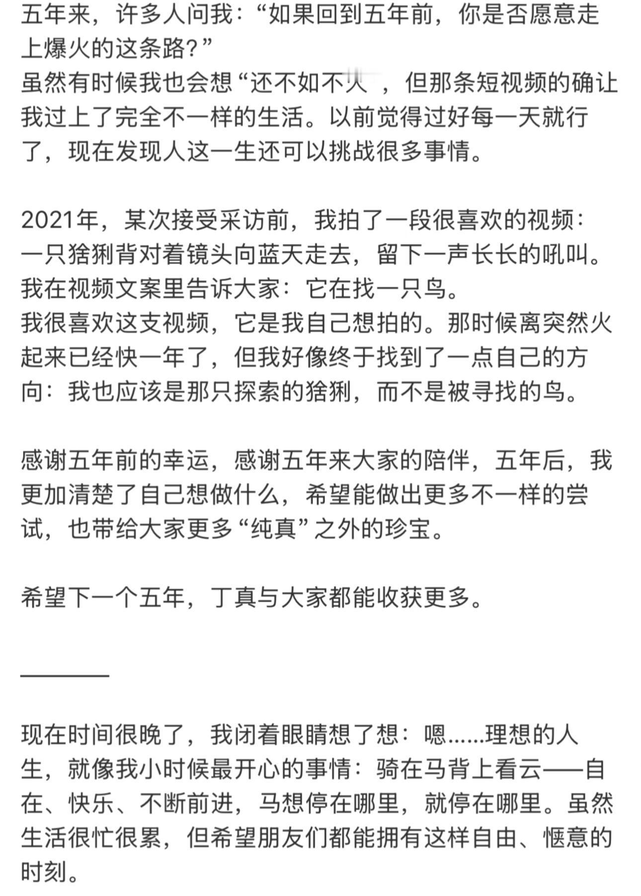 他像大自然的孩子,不执着、不比较,接受命运的无常,也尊重万物的节奏。他说理想的人生,就是“骑在马背上看云——自在、快乐,马想停在哪里,就停在哪里。”