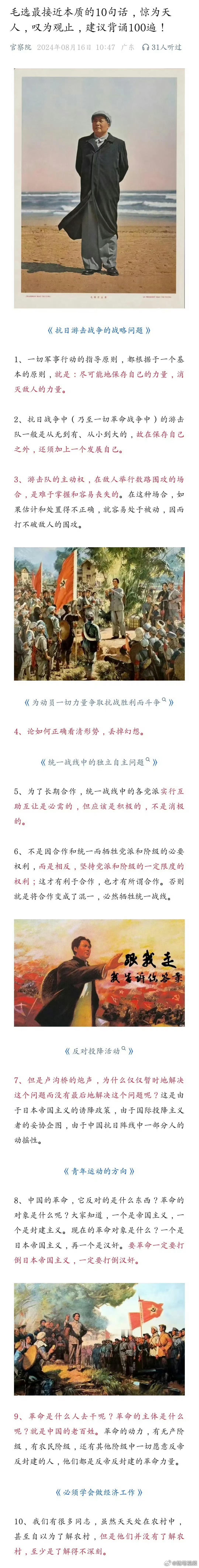 毛选最接近本质的10句话,惊为天人,叹为观止,建议背诵100遍!