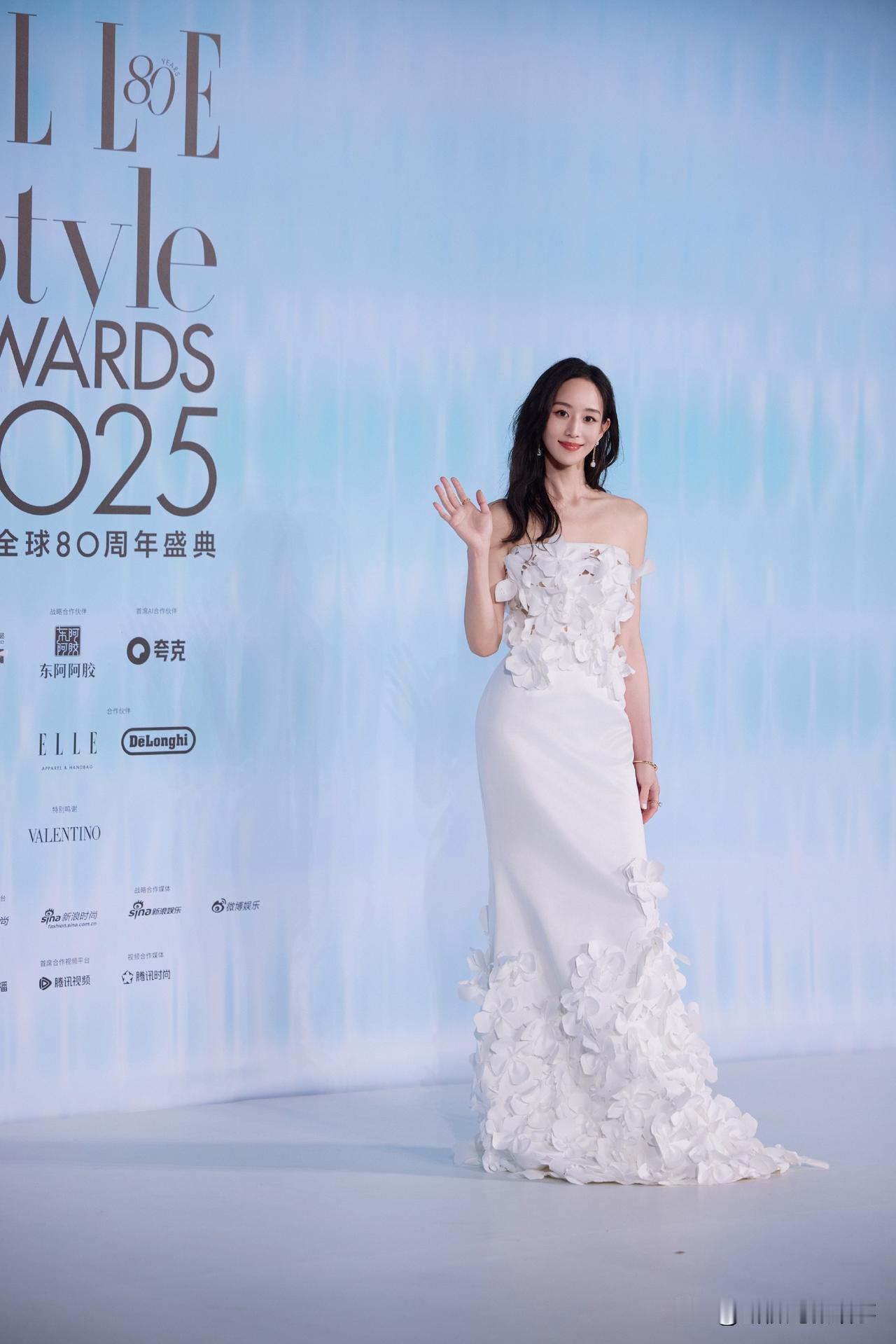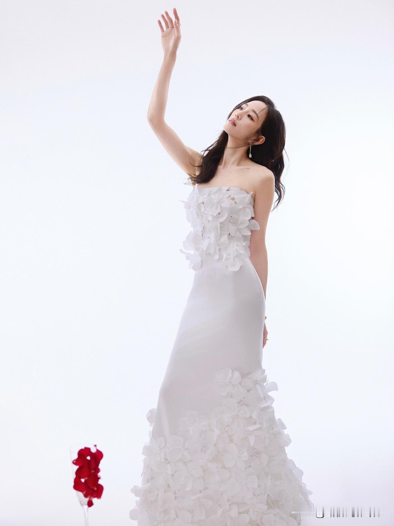 白裙缀花,张钧甯的清冷柔雅 张钧甯身着白色抹胸裙亮相,裙身缀满的花瓣元素如月光下舒展的白梅,层层叠叠漾着温柔。轻盈卷发垂落肩头,衬得锁骨线条愈发纤细,清冷的眉眼间藏着恰到好处的柔美。她静立时如月下仙子,抬手拂发的瞬间,又添几分灵动,将清冷与柔美揉成独一份的优雅,自带岁月静好的氛围感。