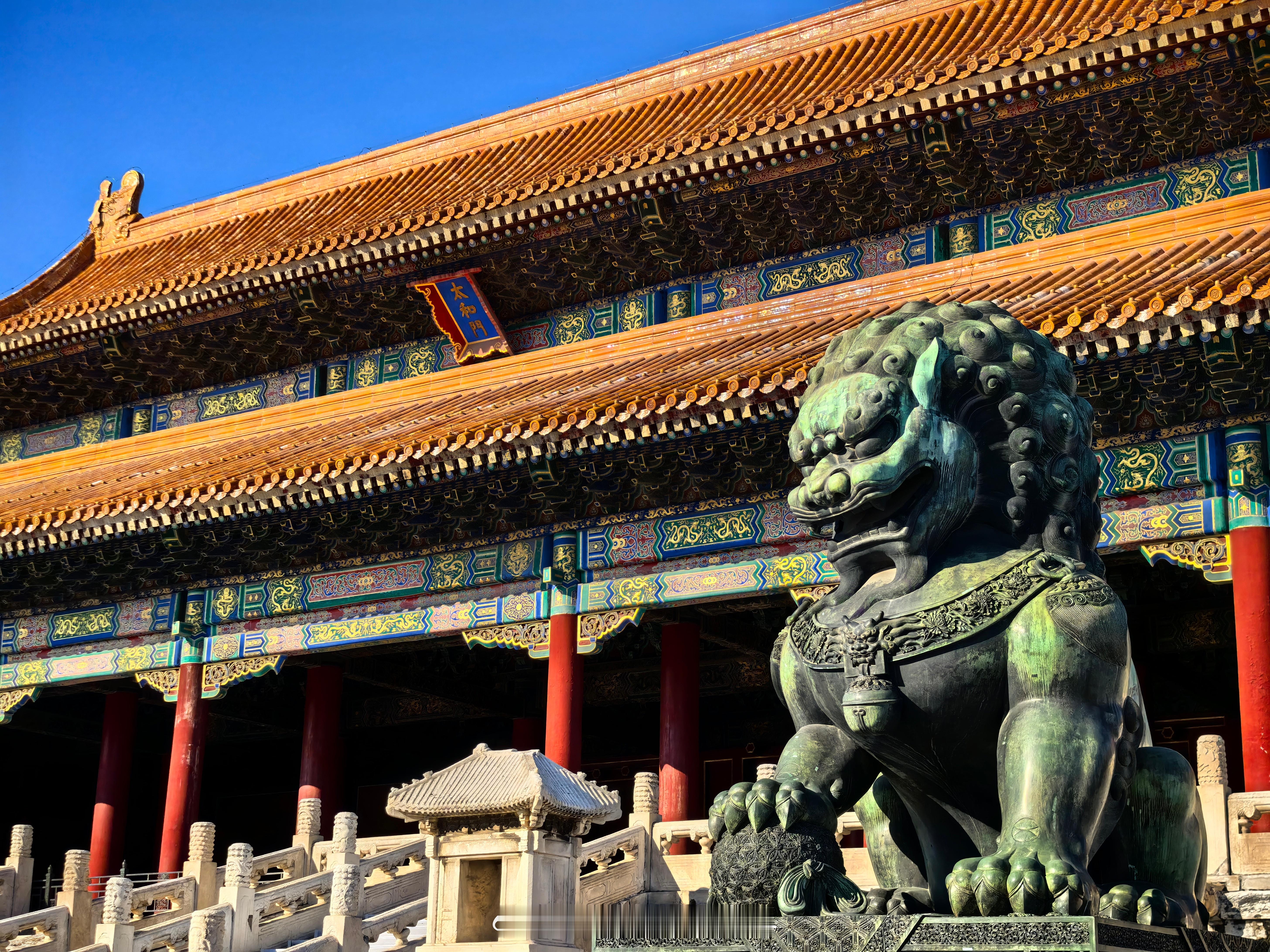 琉璃瓦在晴光里淌着金,铜狮蹲守百年的风,红柱撑起褪色又重焕鲜亮的画栋——这是时光舍不得惊扰的庄重,也是岁月揉进细节里的从容。
