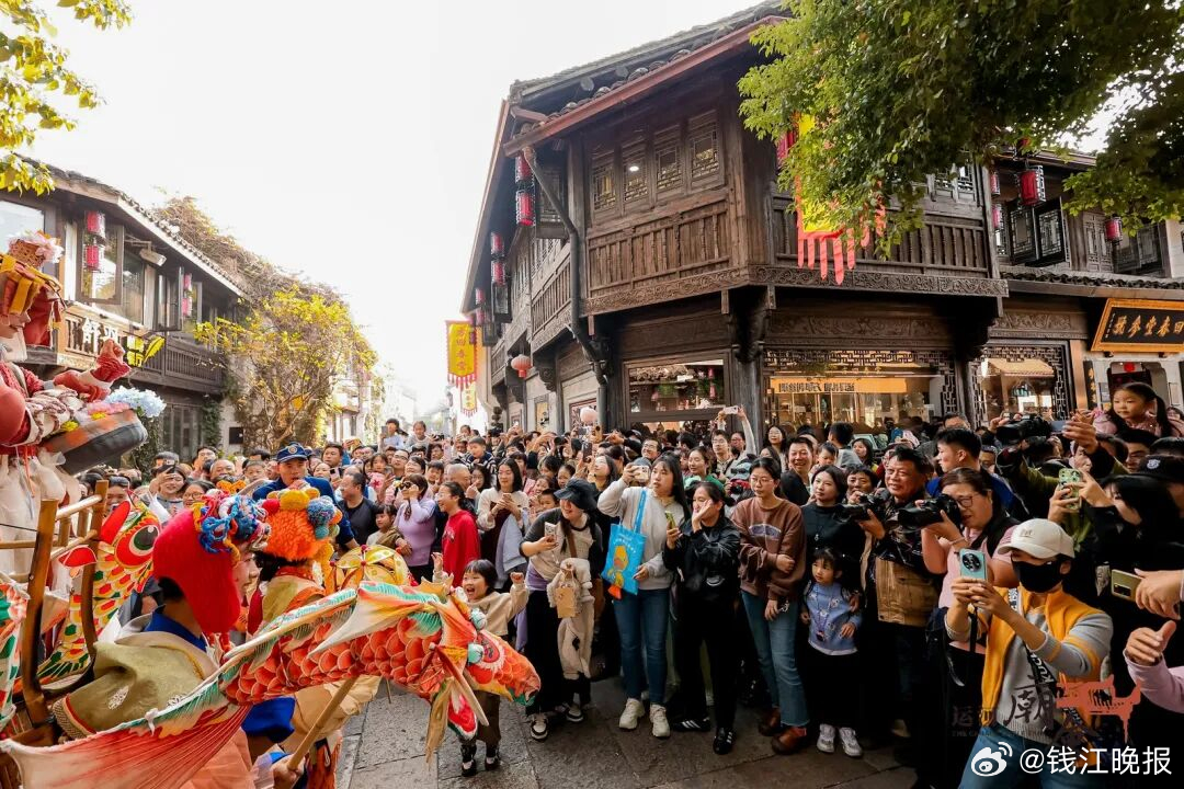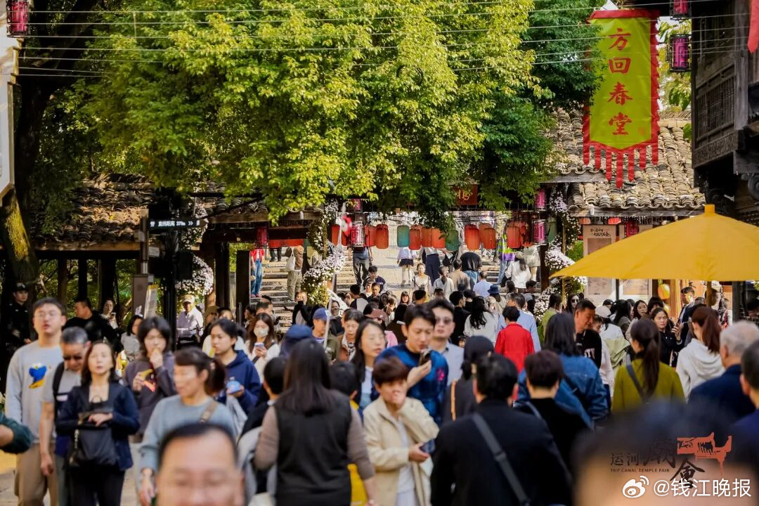 【,63万人在运河畔的奇妙碰撞】面包的香气与古琴的余韵在运河上空交织,汉服少女举着咖啡自拍,宋代商贩的吆喝声与街头乐队的电吉他不期而遇——这就是第十二届中国大运河庙会的独特风景。秋日的运河畔,一场跨越时空的对话在刚过去的周末上演。11月13日至16日,以“老杭州·新生活·庙趣新篇”为主题的第十二届中国大运河庙会,在运河沿岸六大街区同步展开。四天时间,庙会共吸引游客63万+人次,单日最高人流量达21.6万+,创下历年新高。与往届不同,今年庙会呈现出传统与潮流的有趣融合,不仅吸引了各个年龄层的游客,更在社交媒体上引发热议。