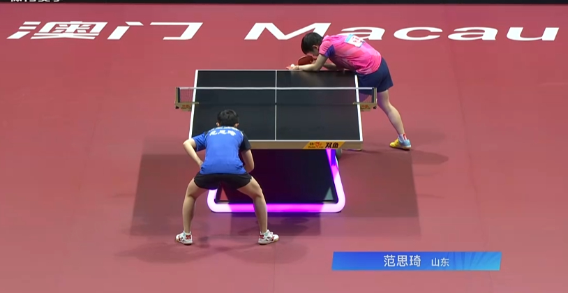 全运会乒乓球女团金牌赛,山东vs河北。第二盘,孙颖莎3比1范思琦。比分:11-5、11-9、10-12、11-5目前河北1比1山东。
