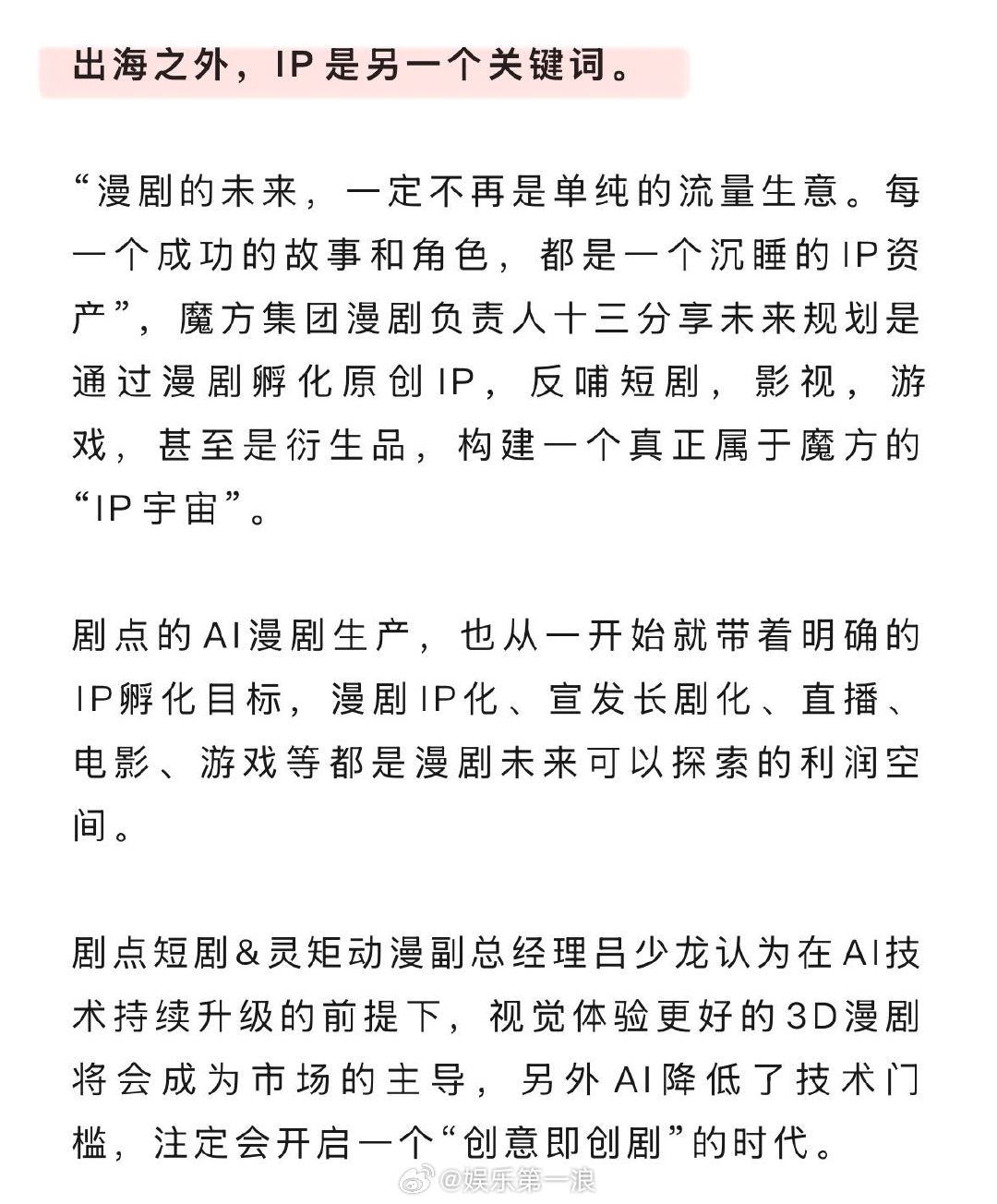 【中国霸总短剧收割欧美】相关内容曾在2023年引发热议,狼人当霸总,ABO设定营造宿命感,更适合欧美宝宝体质的本土爽剧,一经推出便成了平台顶流。真人霸总短剧在本土化改编后打开了欧美市场,而漫剧吸取短剧的成功经验,早早开始了出海布局。