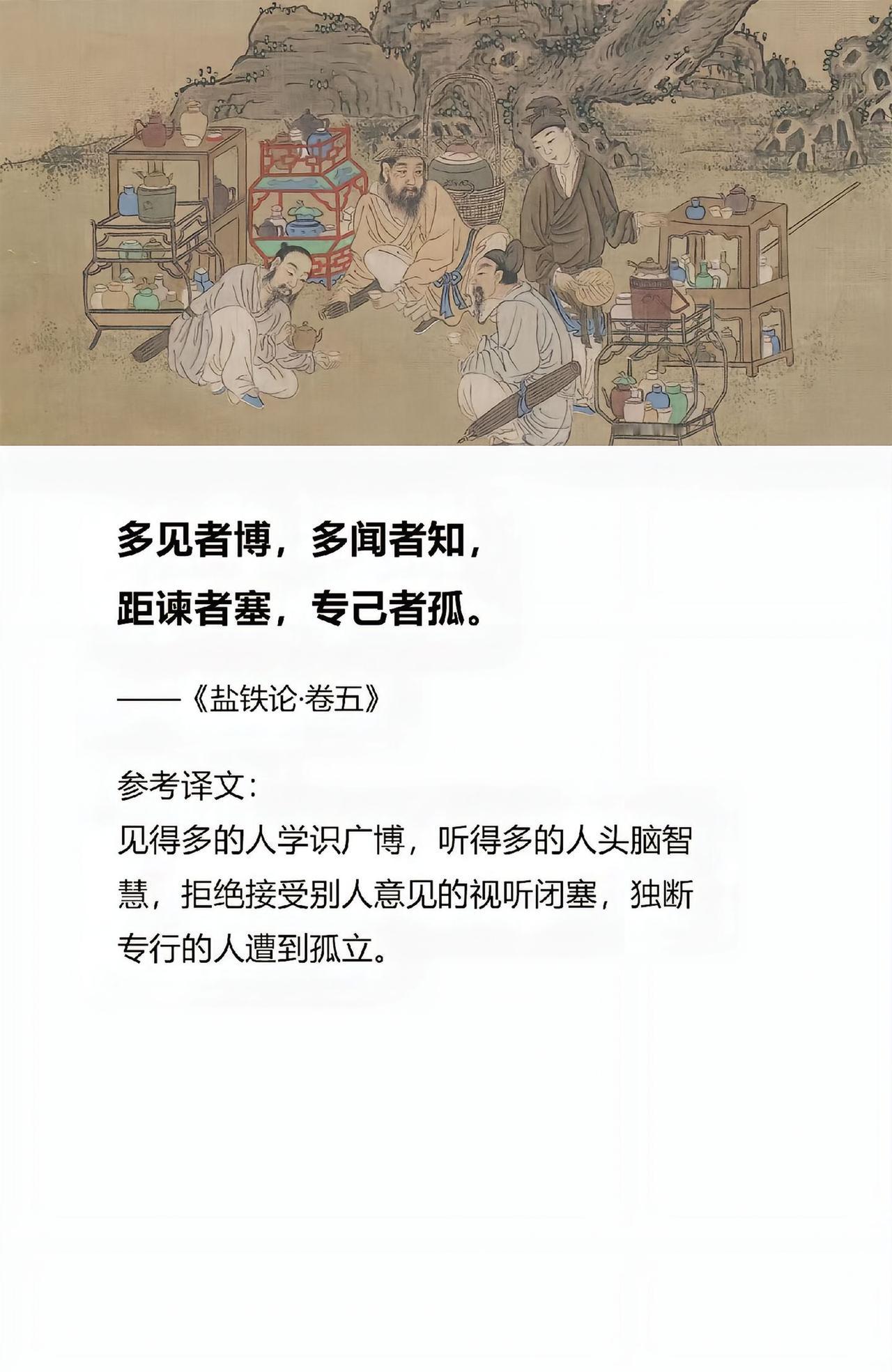 《盐铁论》四句经典语录,每一句都是精髓,充满大智慧。能悟透这些大智慧,能少走很多年弯路。比如这一句,多见者博,多闻者知,距谏者塞,专已者孤。意思是见得多的人学识广博,听得多的人头脑智慧,拒绝接受别人意见的试听闭塞,独断专行的人遭到孤立。大家没事可以多读一读这些话,多品一品这些句子,哪怕悟透一句,也能终生受益。#MCN双量进阶计划##寻美三湘##长沙新朋友# 正版盐铁论经典名著全本全注丛书窥探汉代政治史经济史的真相书