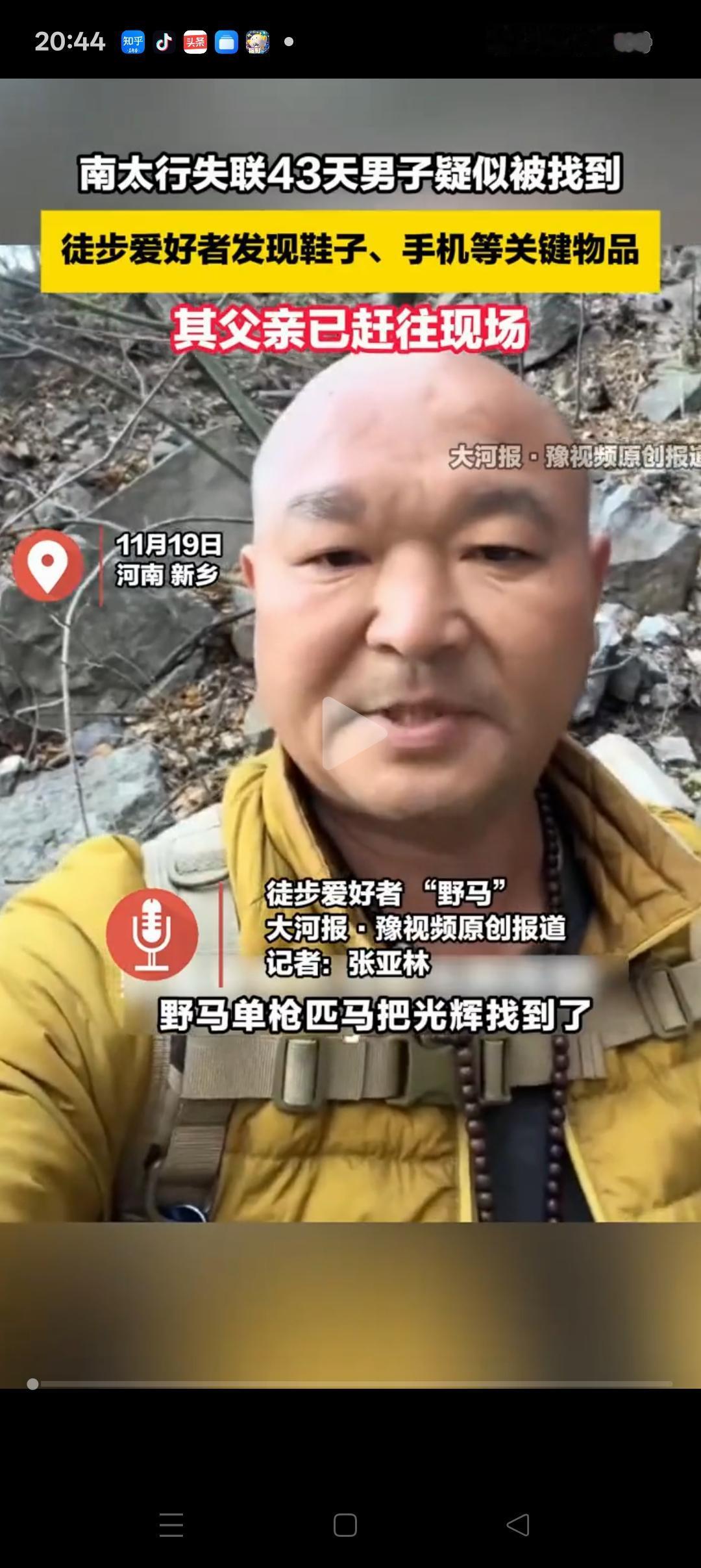 被发现时,已经是一具冰冷的遗体!失联43天的饶光辉找到了,就在一处悬崖下,旁边还有一只鞋子,一部手机。 失联当天晚上8点,他曾经打电话给民宿老板,称手机快没电了,而且迷路了,随后就联系不上了,找了很多天都找不到。 太行山区是没有开发的野山区,地势很复杂,通常一个人是不会单独行动的,29岁的饶光辉还是想的太简单了。 当天晚上迷路后,他应该原地等待救援,保存体力休息,而不是赶路。因为没有明亮的灯光,很容易摔下悬崖峭壁,也基本走不出去。 虽然现在还没有得到他父亲的确认,但是从救援队的口中得到的消息,已经基本可以确定,可惜了[流泪][流泪]