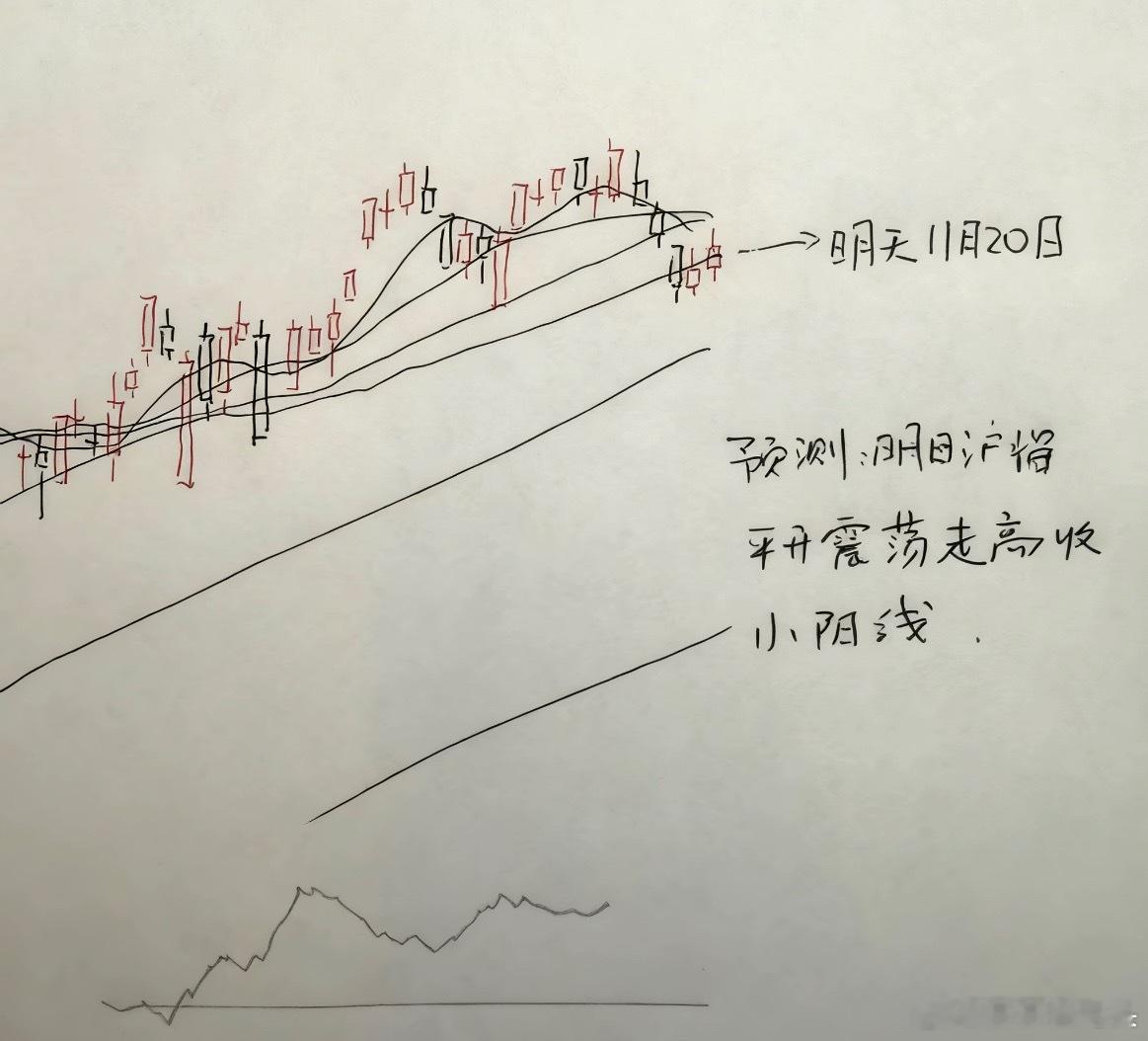 明天A股怎么走?到底是涨还是跌?莎莎做了一个大胆的预判,莎莎给大家讲三个具体理由第一,今天市场最大的一个特点就是成交量缩量到非常低的一个水平,三市的成交额1.74万亿,比上一个交易日巨幅缩量2,033亿。如此大幅度的缩量,并且配合今天上证指数走出的是一颗小k线的走势。而且再配合今天市场情绪到达冰点附近,下跌的家数4100多家。以上种种特征都说明短线拐点已经到了。第二,三大指数目前都有比较重要的支撑。今天上证指数最难能可贵的就是并没有跌破,上一周莎莎就和大家讲到的,11月5号的低点3922点。那么3922点没有被跌破的话,上证指数就还没有形成重大的技术破位。虽然昨天跌破了30日均线,也跌破了日线级别上升支撑线,但是3922点在今天来看,还是构成了强支撑。预计明天市场指数能够在3922点的支撑下,再次展开反弹。而创业板指深成指,今天都已经到达60日均线的支撑。所以莎莎认为这个支撑还是能够产生一定的支撑力的。第三,根据莎莎观察今天晚上美股短线或有一定小幅度反弹的产生。近期A股和美股的联动关系相对比较明显。如果外围市场今天晚上能够反弹的话,超短线来说,对于A股的止跌企稳也有一定的情绪助推作用。所以综合以上分析,莎莎认为明天指数或者能够找出一颗小幅反弹的阳线。那么明天A股到底怎么走呢?大家请看下图关于明天走势莎莎手绘的预测图莎莎多半是从纯粹的技术面出发。对于消息面和基本面的分析则相对较少。所以我的观点不一定正确,仅代表个人见解,不代表任何投资建议。最后莎莎还想补充一点的是,市场指数当前确实处在一个非常微妙的拐点附近。如果市场主力在当前这个位置不开始发力的话,那么市场指数毫无疑问,就会从此展开阶段调整走势。但是如果在当前这个关键点位,主力再次出手,给市场重新提供新的增量资金。那么这个时候市场短线或者还能延续一小波段的上涨行情。更直白的说,大盘处在可以有拐点的位置,而明天将是关键中的关键。如果有什么新的观点,莎莎会第一时间发文告诉大家,大家保持关注。兄弟朋友们点赞,评论➕关注就是最莎莎这个技术派的最大支持