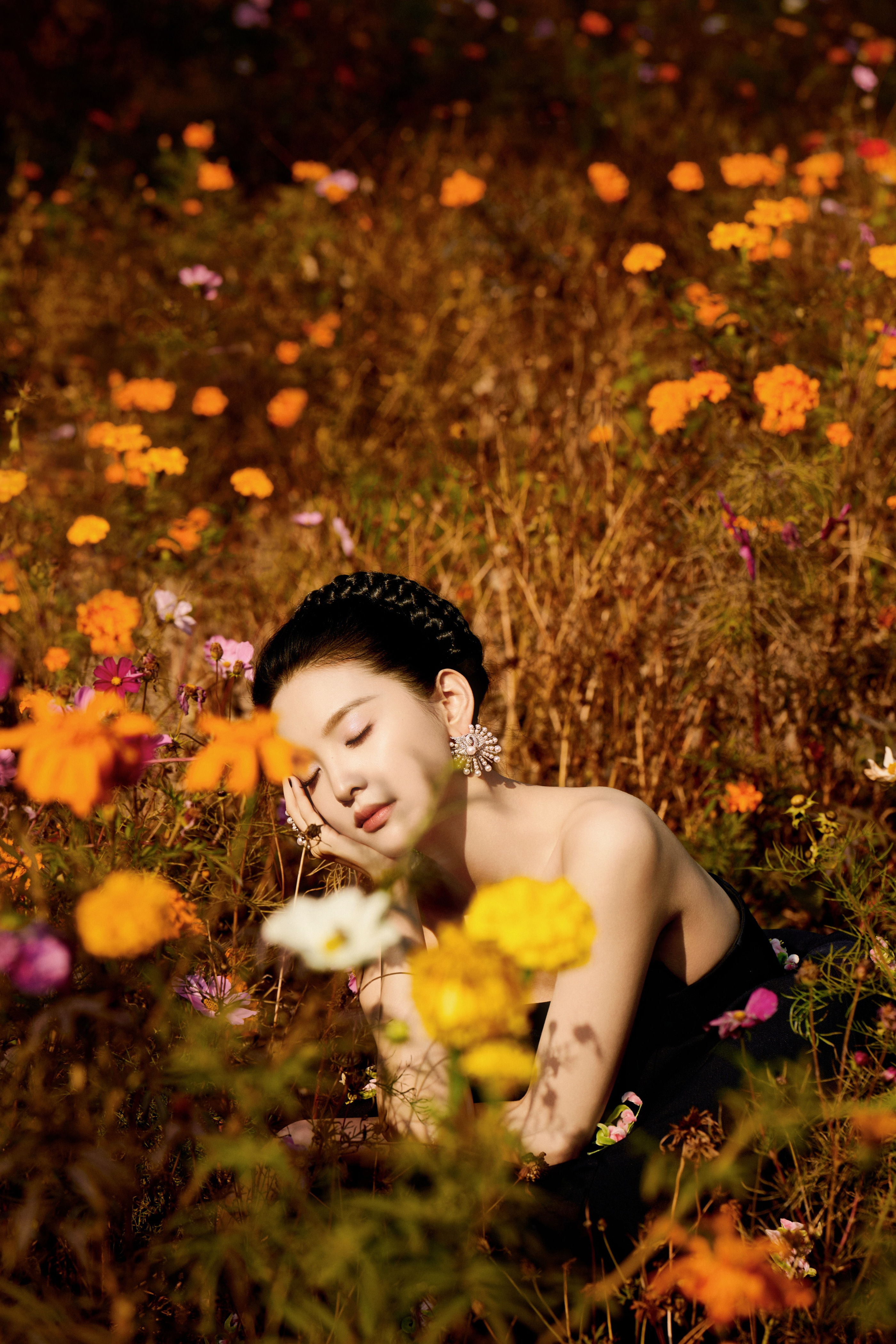 章若楠这身生日写真造型太戳“元气松弛感”了!亮黄色上衣撞色暗纹裙装,搭配Loro
